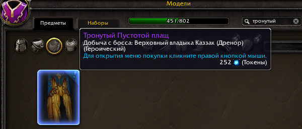 | Description | Модель https://www.wowhead.com/ru/item=127973/ не добавляется в коллекцию при надевании | ||||