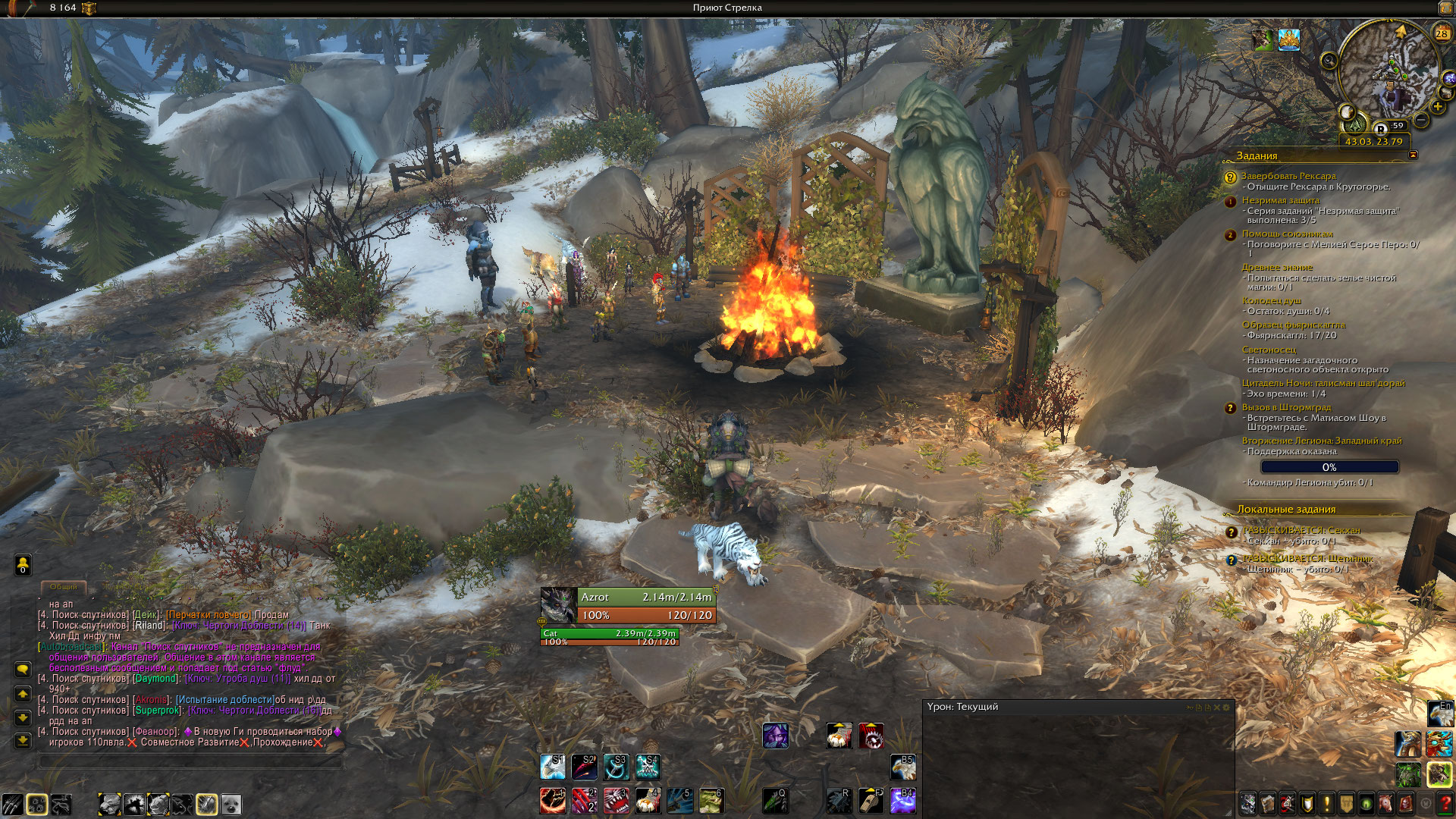 | Description | Я уже получил первый артефакт на ханта(Стрельба) и что бы получить следуующий(Повелитель зверей) на сколько я понял, у костра в оплоте(который на скрине) должен стоять нпс у которого можно выбрать оставшися два артефакта, но ни один из нпс не кликабельный т.е. с ними нельзя взаимодействовать. | ||||