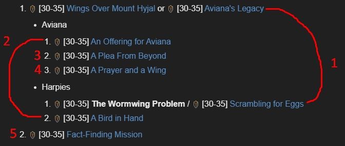 | Description | Легион плюс. Калимдор - Гора Хиджал. Орда. Магхар, охотник Повелитель зверей Квесты 25655[https://www.wowhead.com/ru/quest=25655/трения-с-червивым-крылом] и 25656[https://www.wowhead.com/ru/quest=25656/борьба-за-яйца] должны быть доступны сразу. Пруф: https://wowpedia.fandom.com/wiki/The_Wormwing_Problem *На фото пытался объяснить что квесты идут параллельно друг от друга | ||||