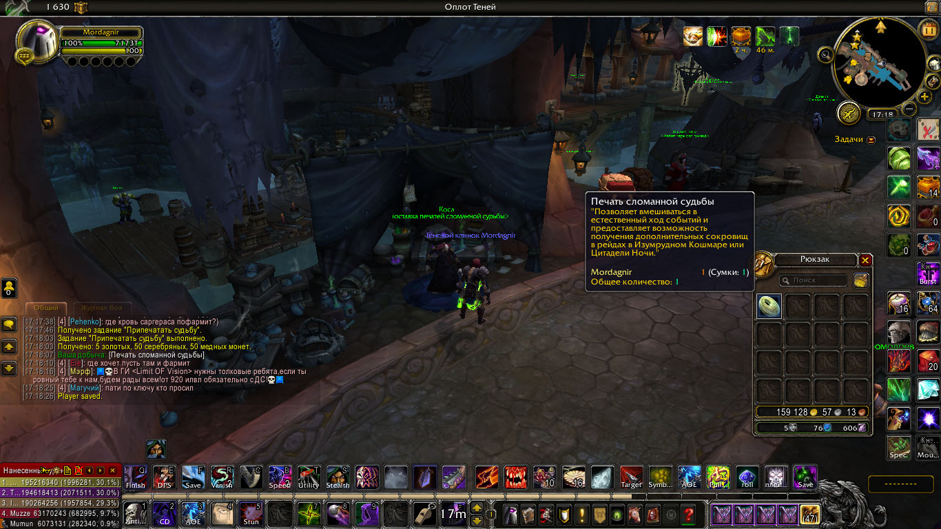 https://ru.wowhead.com/order-advancement=454/благословленные-печати не работает. Нпс добавили, заказы она выполняет, но выдает бесполезную хрень, которая еще и место в сумке занимает, см. скрин (не уверен, работает ли эта печать в указанных местах - не проверял, но даже если там она и работает, все равно это не то, что должно быть). Аналогично https://ru.wowhead.com/order-advancement=420/высокая-боеготовность у дх, выдает те же бесполезные печати. https://ru.wowhead.com/order-advancement=443/грабеж у роги не работает из-за отсутствия https://ru.wowhead.com/npc=110820/коса А вот "Высвобождение инфернала" у лока давно работает, хоть и находится в этом списке среди нерабочих (указано как Seed of Corruption). Аналогичный "Ледяной змей" у дк, не работает из-за отсутствия https://ru.wowhead.com/npc=111634/винтер-пейн , принимающего заказы на ледяной крест - реагент для мгновенного выполнения локалки абилкой "Призыв ледяного змея". Сама абилка на карте присутствует. P.S. если такая проблема с НПС в оплотах, мб хотя бы при выбранных улучшениях оплота добавить интенданту оплота соответствующие итемы в продажу по цене заказов? |