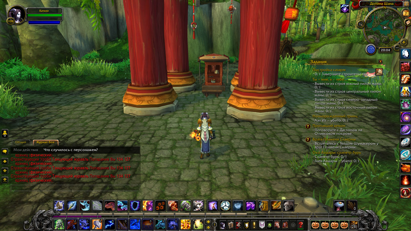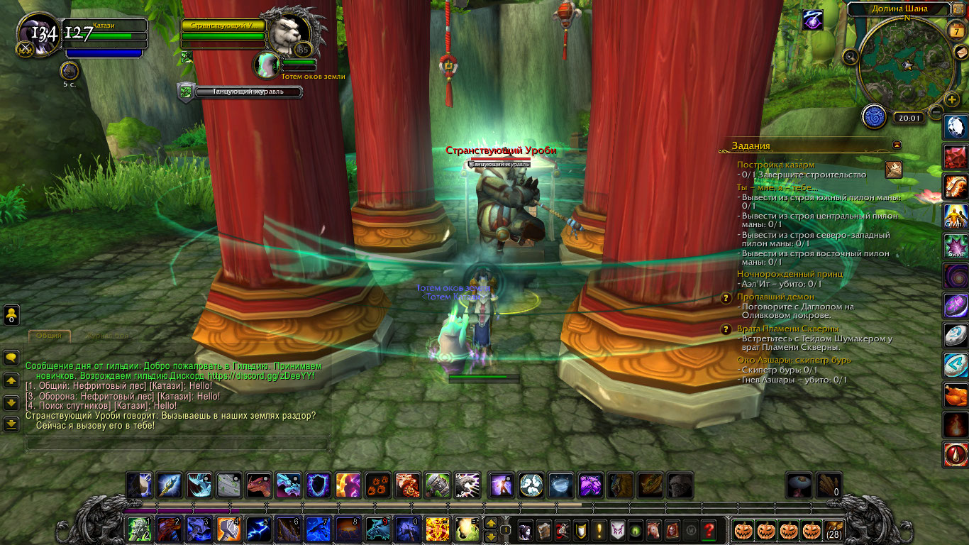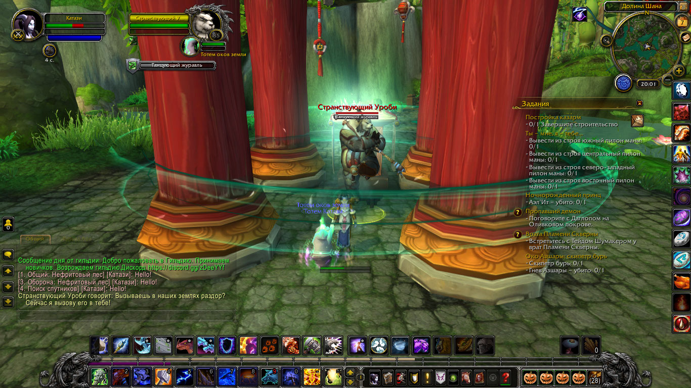 Захожу шаманом 108 уровня в эту локацию и прилетаю к нему.Ставлю тотем на замедление чтобы спровоцировать на бой и выждав журавлей виден такой вот результат. |