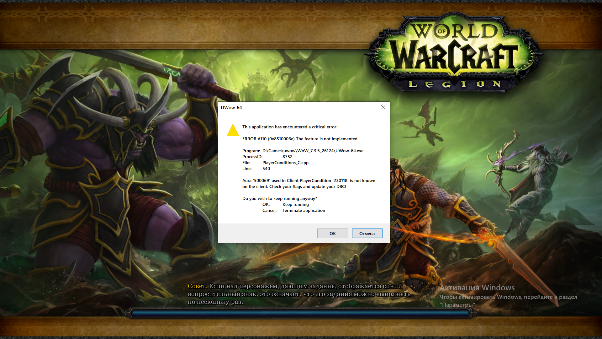 | Description | При загрузке в момент, когда персонаж должен войти в мир, выдает ошибку. Нажатие ОК просто вызывает то же самое окно. Соединение с Интернетом в норме. Исправление персонажа ничего не изменило. В ошибке что-то сказано про неизвестную ауру/неизвестное состояние. У меня был применен жетон Премиума на 3 дня, сегодня он закончился (я сегодня еще не заходила в игру). Не уверена, что связано, но просто предполагаю. (Хотя использую такой жетон уже второй раз, в первый раз такого не было.) | ||||