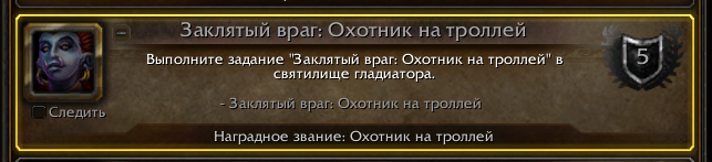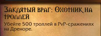 Так же в дальнейшем будут трудности и с этими достижениями , там так же по 500 убийств , с Нежитью , эльфами крови , орками , как то проще их больше на бг чем всех остальных . Хотя вы сами могли бы посмотреть кого там и сколько . |