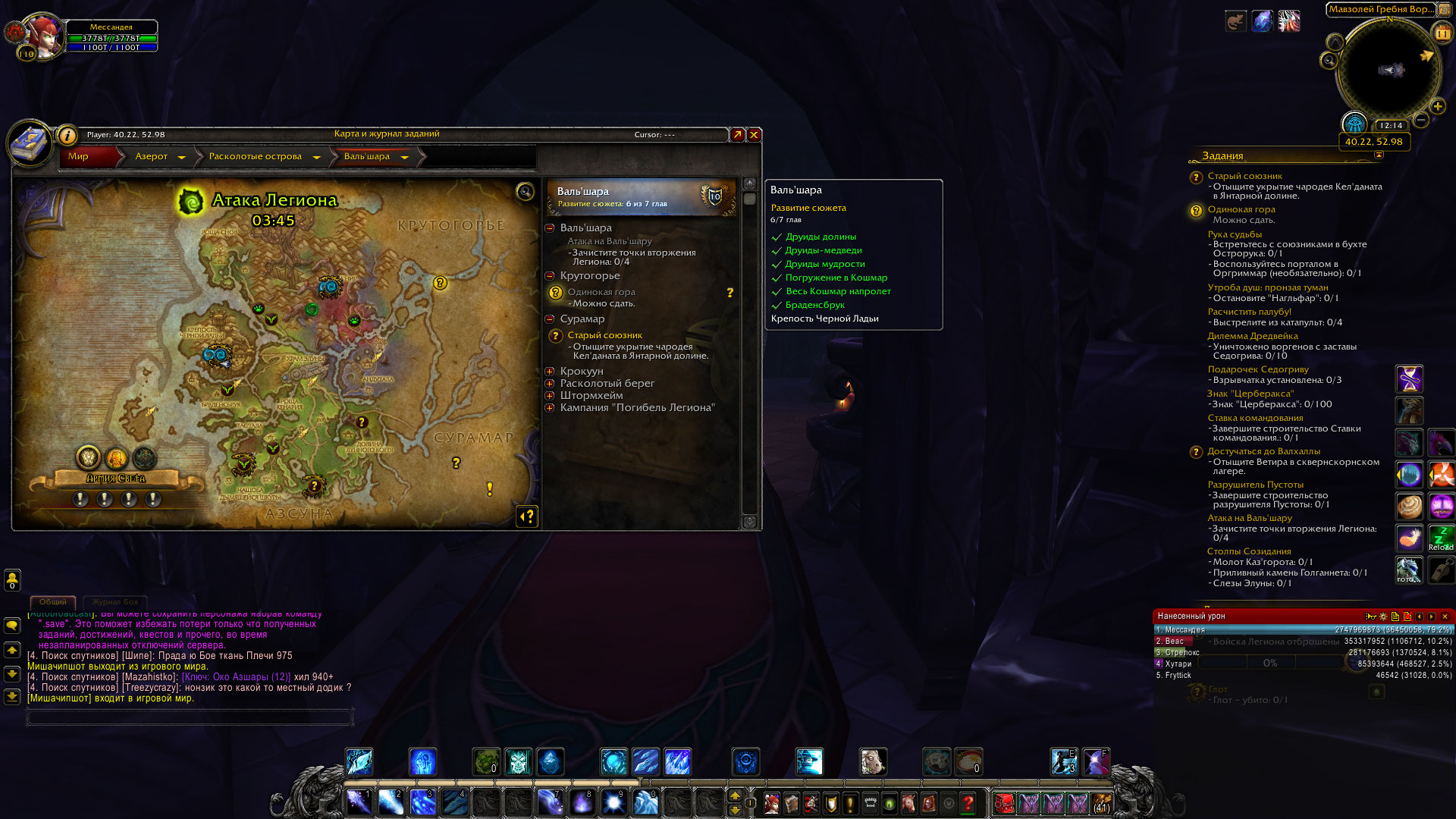 | Description | 9.07.2019 выполнила всю цепочку в Валь'шаре, получив достижение "Полная Валь'шара". 11.07.2019 зашла в игру и обнаружила невыполненную главу "Крепость Черной Ладьи". По новой выполнить цепочку не могу, ибо нет НПС, у которого можно было бы взять задание. Подскажите, что делать? Без достижения не открою полеты. P.S. Для проверки запустила Ваш аддон Questline tester, который выдает, что задания выполнены (прилагаю скрины). | ||||