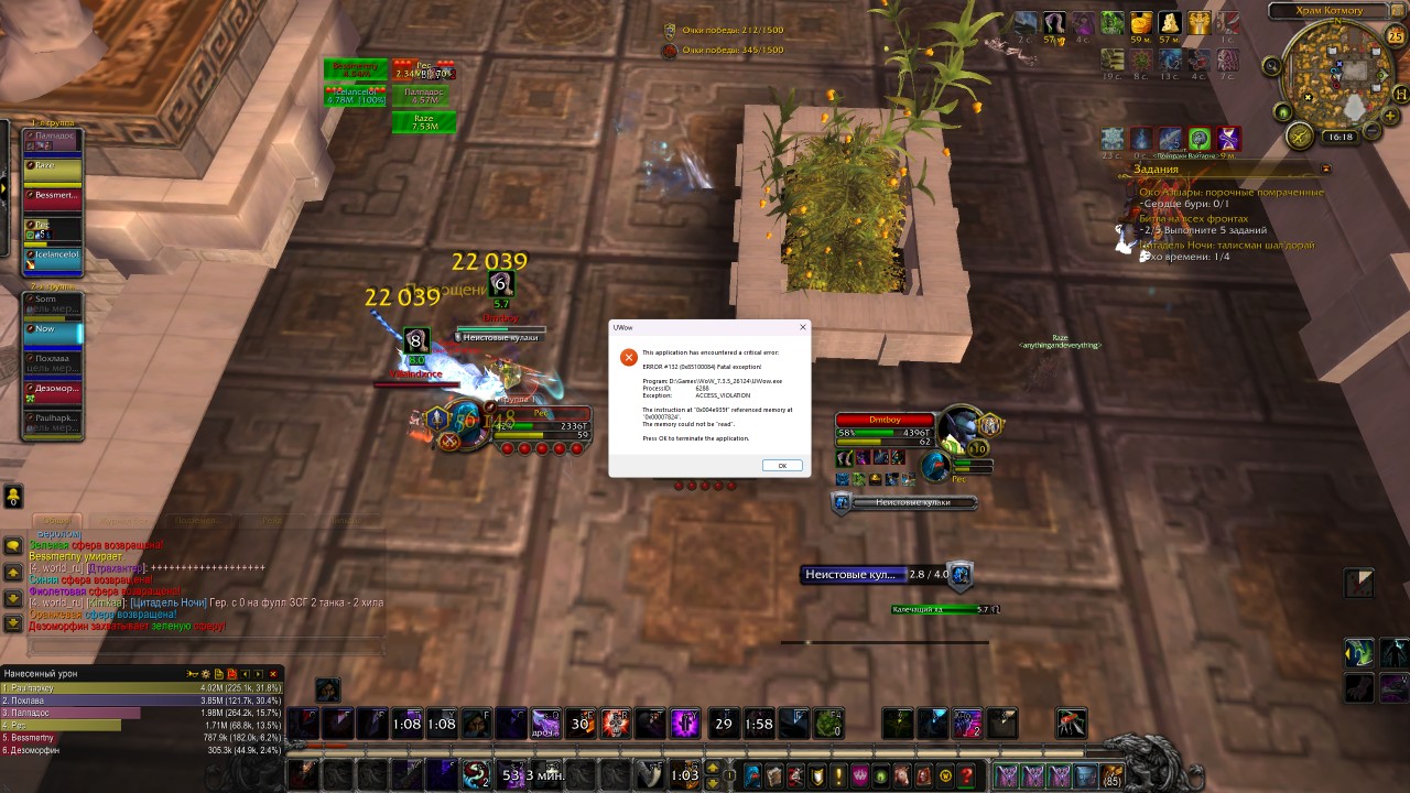 | Description | Постоянные вылеты с ошибкой как на скрине Особенно часто в массовых скоплениях игроков | ||||