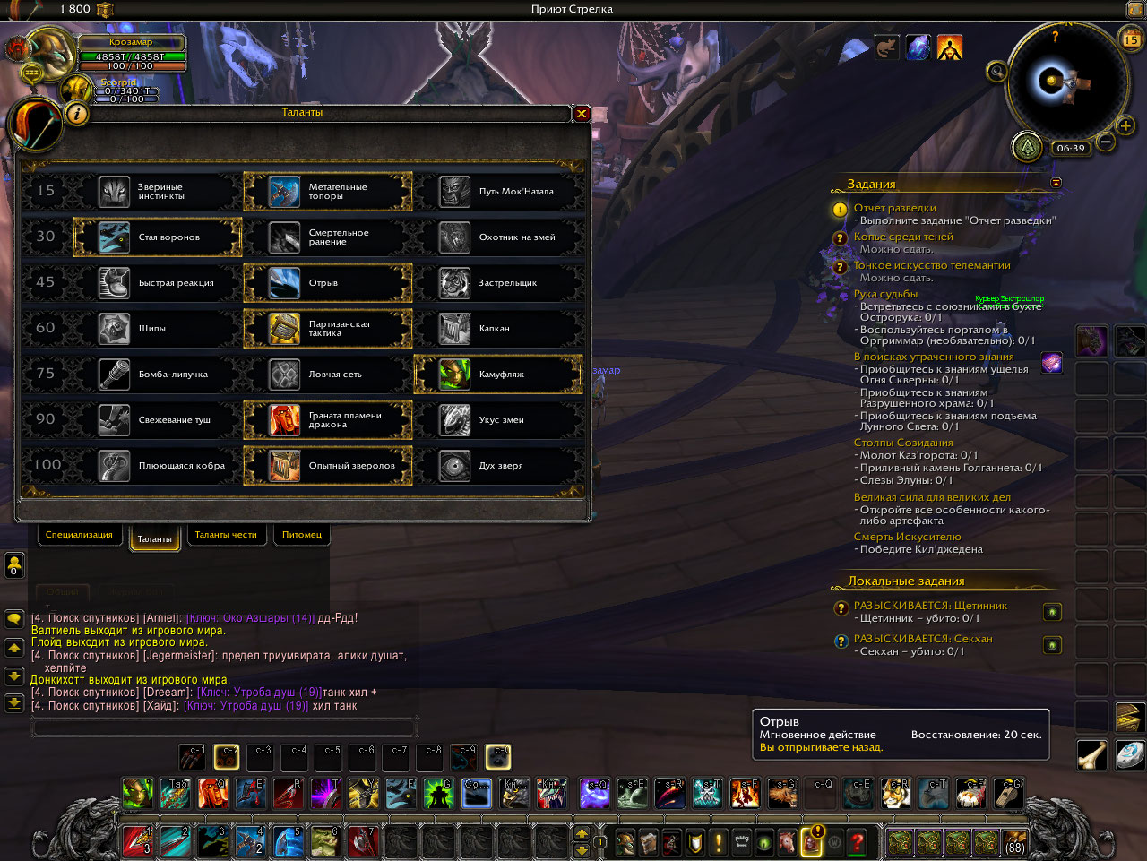 | Description | Я играю за сурв ханта. Выбрал талант отрыв и он иногда бывает не работает. Приходиться перевыберать талант, чтобы тот заработал. Он горит серым и не может быть использован | ||||