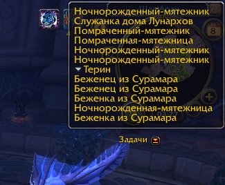 Я выполнил кв последний рубеж Лунных стражей. Они забежали в Шал'Аран и исчезли, а показывает, что кв нужно сдать почти в самом начале, где и взял