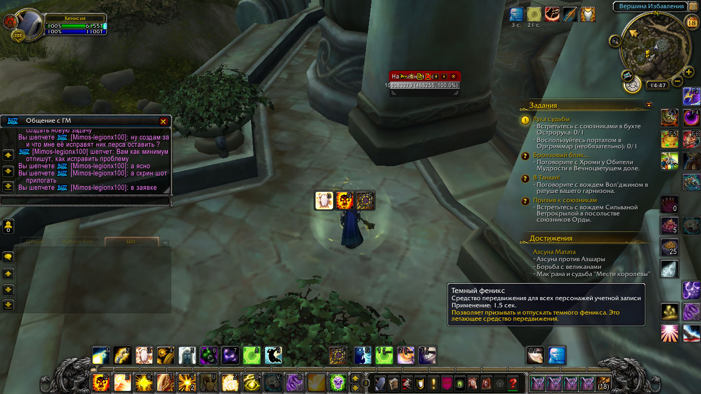 | Description | Уважаемые разработчики у меня при выполнение переноса с альянса на орду возникла проблема что я не могу выполнит кв на башню магов проблема возникла стем что у меня пропал нпс который даёт эти квесты эта проблема на 4 персонажах 2 у меня и 2 и у моего друга на его учётной записи возникла такая же проблема у меня дар шестерых сделан на всех спеках а нпс нету прошу помочь помочь пожалуйста ребята | ||||