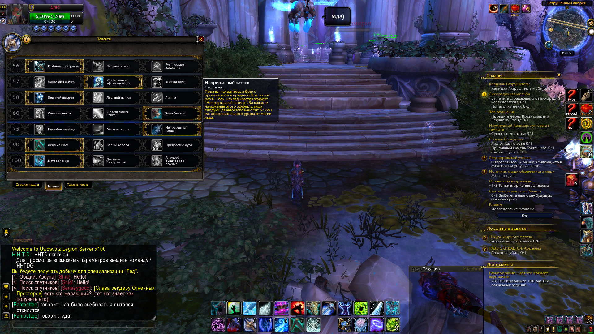 Кто то ошибается. или амеры или наши. Придет разработчик и всех рассудит. У меня тоже фрост ДК есть и мне тоже хотелось бы чтобы таланты работали так как надо, то есть на повышение ДПС. |