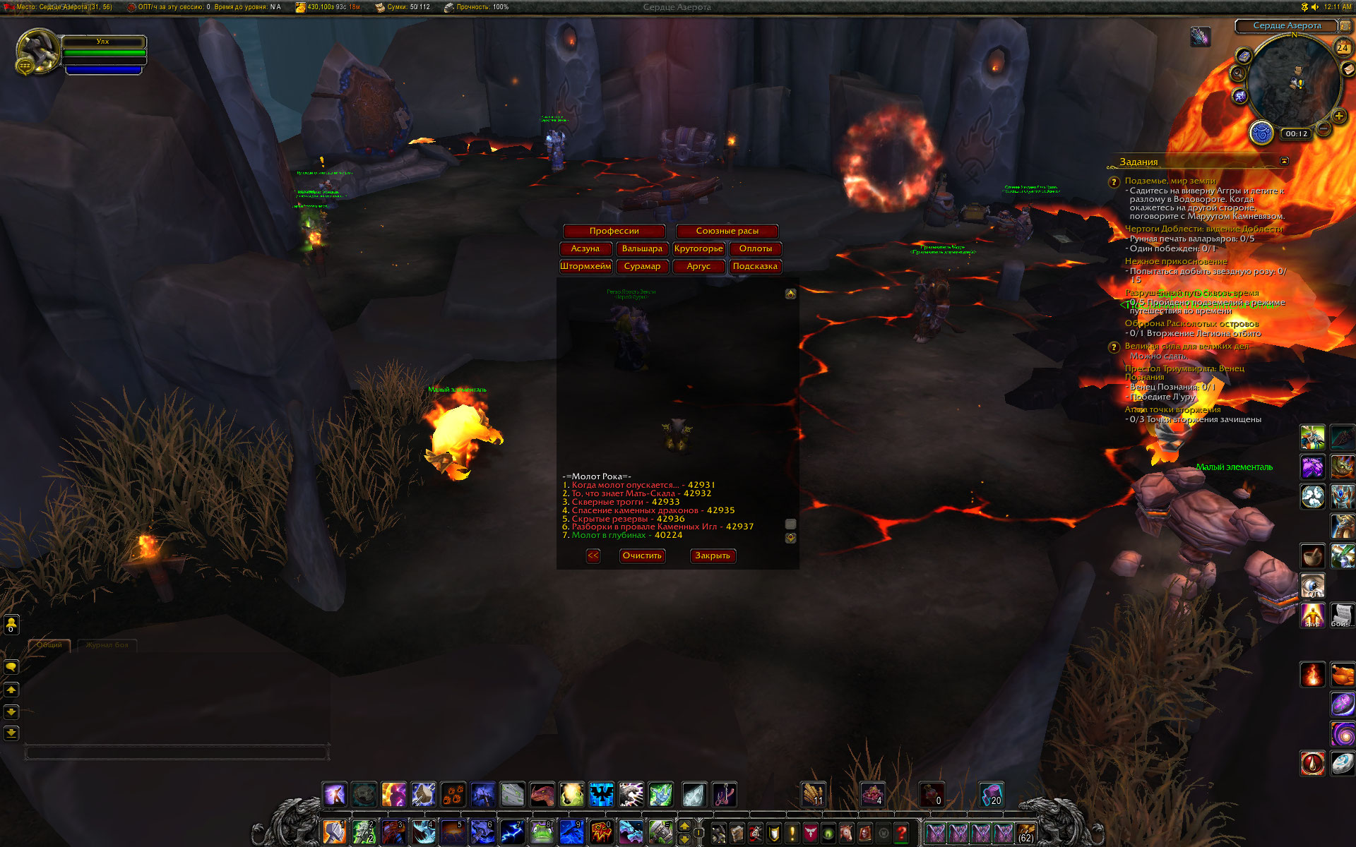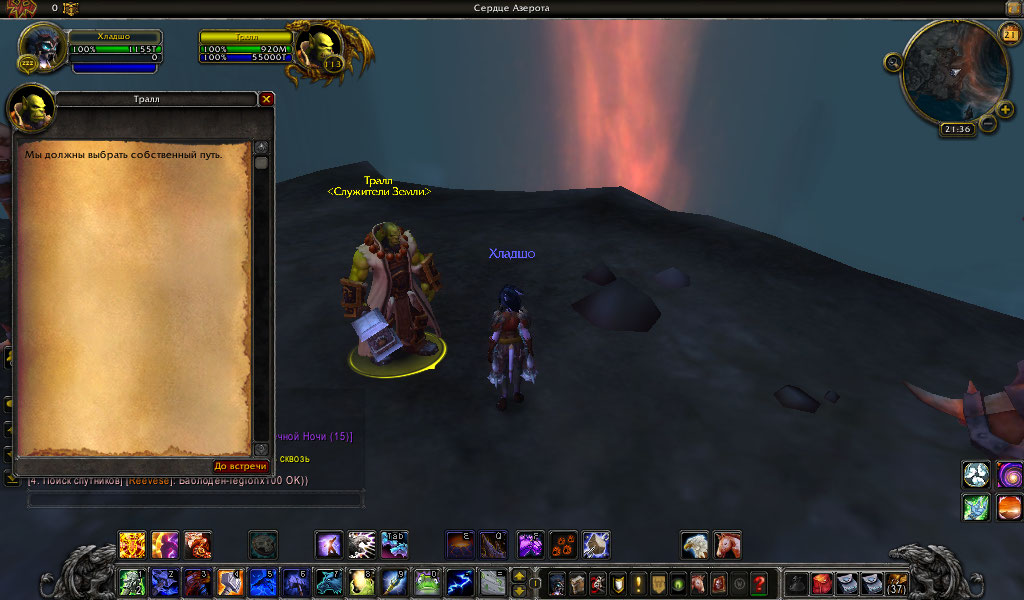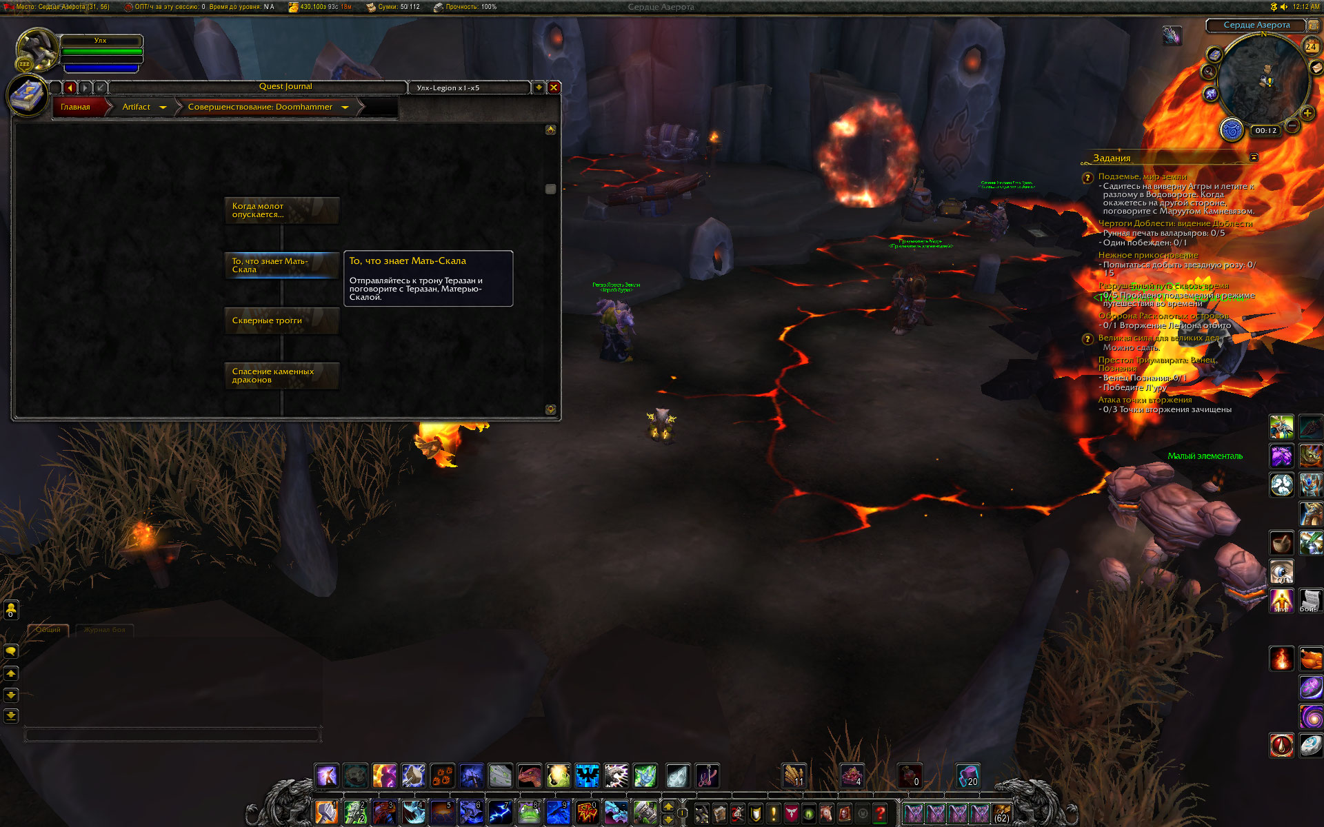 В окне выбора артефактов выбрал у Тралла артефакт Молот Рока. После чего у Майры с грифоном началась не относящаяся к артефакту и нерабочая цепочка квестов в Подземье. В Оплоте Шаманов стоит пустой Тралл и Аггра. Майры с грифоном которая начинает сценарий на артефакт нету.