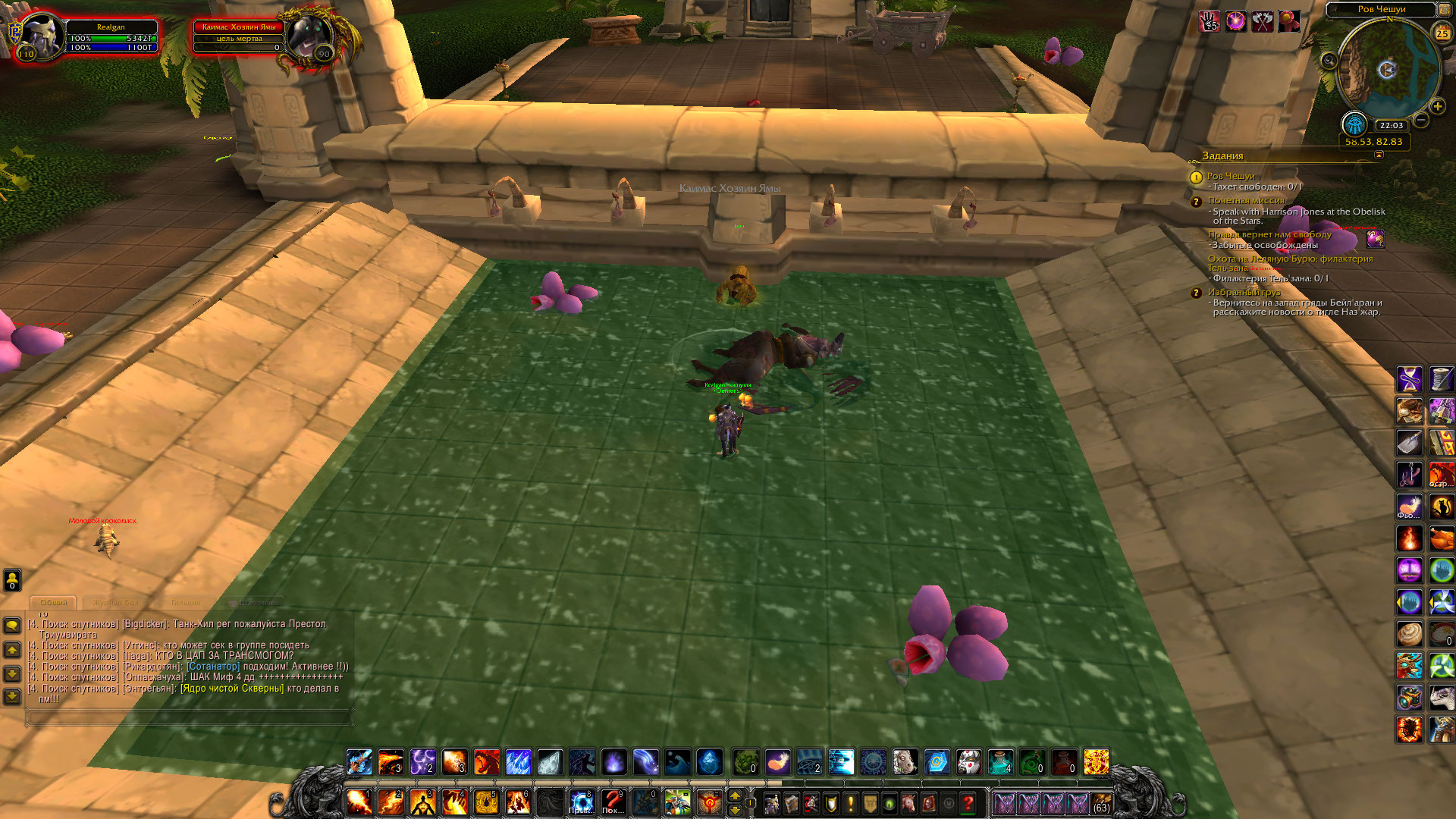 | Description | Квест https://ru.wowhead.com/quest=27738/ров-чешуи#comments должен засчитываться после убийства https://ru.wowhead.com/npc=46276/каимас-хозяин-ямы У нас этого не происходит! На скрине видно что https://ru.wowhead.com/npc=46276/каимас-хозяин-ямы убит но квест не выполнен. | ||||