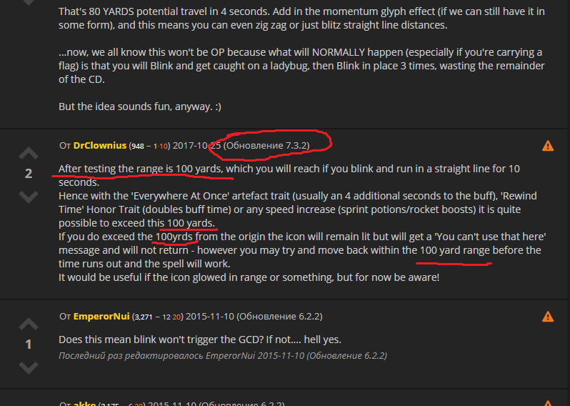 2. Неправильное расстояния использования спела, на данный момент стоит ограничение в 40 метров (это расстояние ввели уже в БФА, а в легионе 7.3.5 было расстояние 100 ярдов или 91 метр)