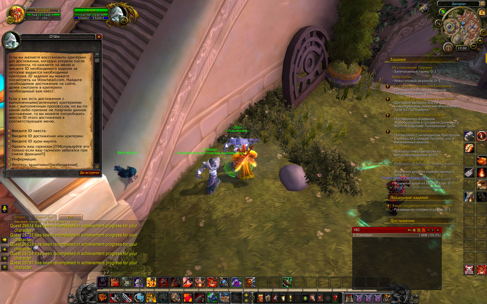 | Additional Information | У Оши этот и другие критерии попытался восстановить, проверил квесты на выполненность - все в норме, но достижение так и не выдалось | ||||