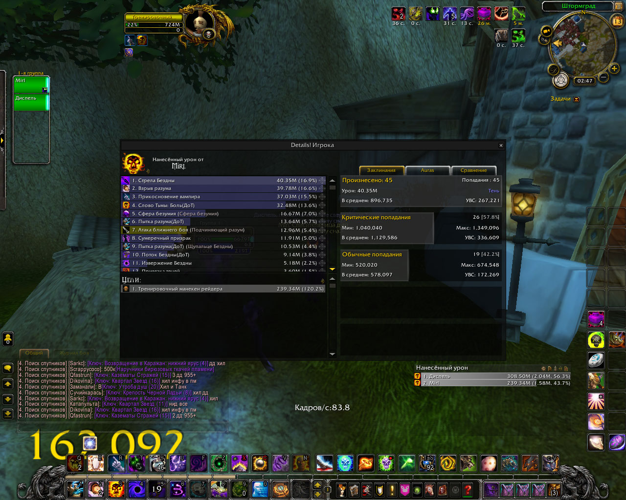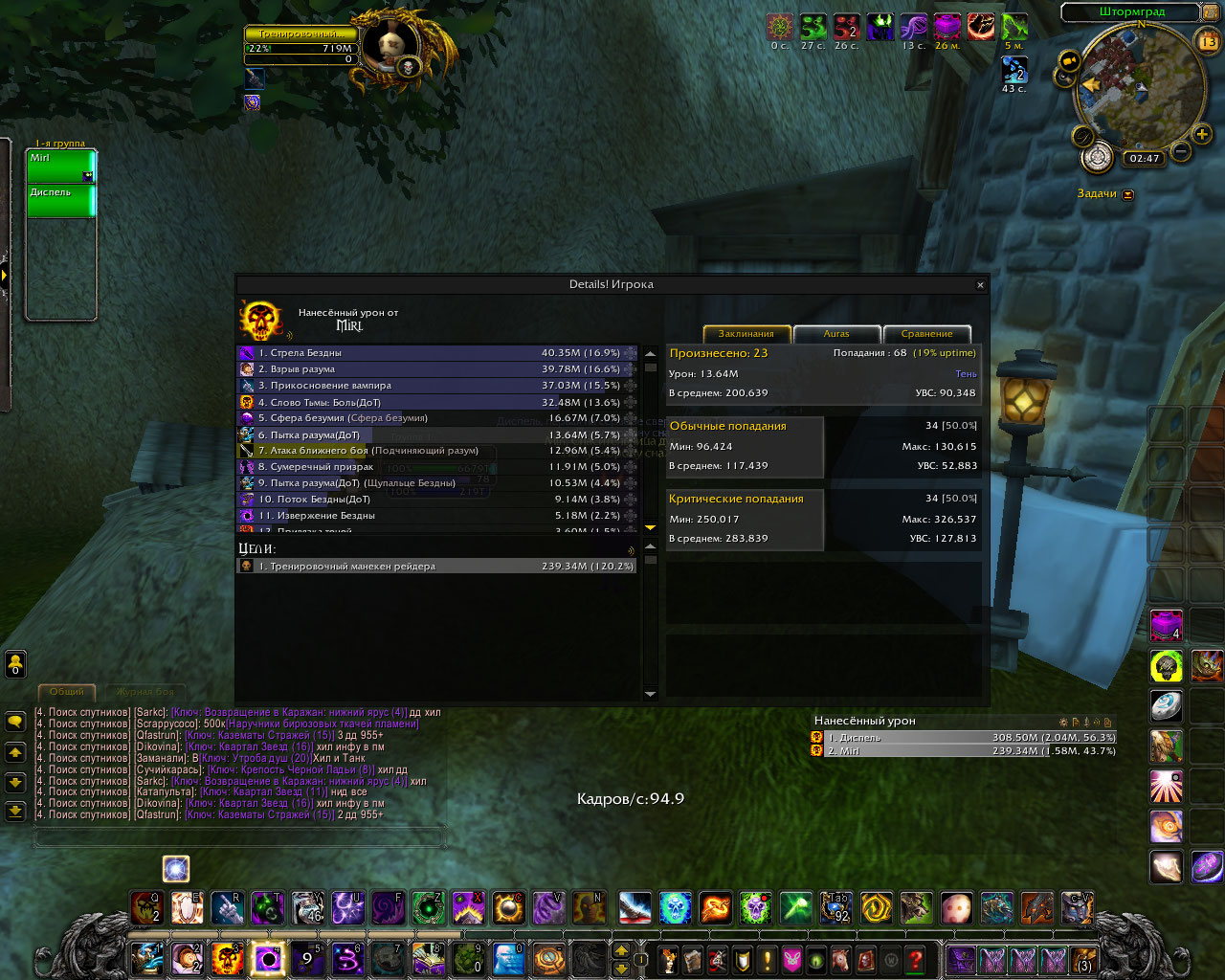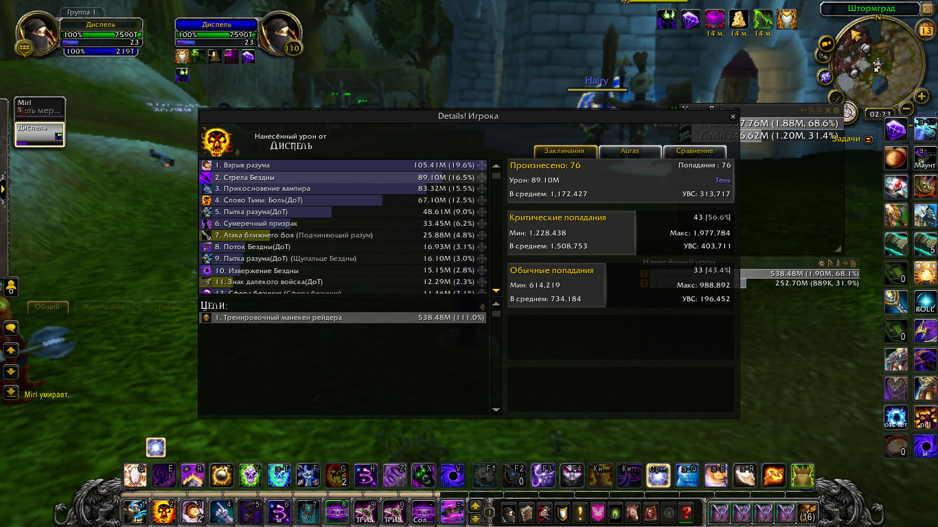 DescriptionПолный комплект делает основным уроном шп криты в длительном бою по логам у шп в абсолютно таком же гире а то и хуже и с такими же реликами и тигелем средний шанс крита 70-80% у способностей которые усиляются комплектом. в моем же случаи это максимум 60% а за частую и 45%. Для проверки я сравнил урон у шп с такими же статами но без комплекта и у него было больше критов чем у меня, хотя это не возможно.Было сделано несколько замеров дпса, просто в одинаковых вещях и вещях который использовались в логах, урона было нанесено столько же сколько за битву с боссом. Первые 6 скриншота просто сравнение одинаковых жрецов с комплектом и без.Диспель тут с полным комплектом. Дальше просто нанесено столько же урона в манекен сколько в босса по логам где шанс крита пытки взрыва и стелы 70% у всех. Из за того что шанс крита меньше , меньше духов, соответственно меньше безумия. На офе жрицы в бисс гире держут 60 стаков не использую питомца а дальше могут все 3 минуты таланта покорение безумию находится живыми на 100 стаках.у нас если после 30 не призвать питомца в гире как по логам то облик спадает через пару секунд. Безумия на много меньше