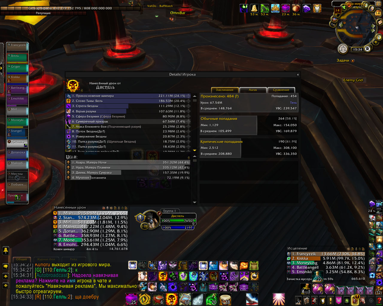 | Description | Дух создается гораздо реже чем должен, имея на 3 реликвии на улучшение это способности у меня есть шанс на создание духа 105% от критического Прикосновение вампира и 100% от критического Слово тьмы:боль. Если шанс слово тьмы боль работает стабильно, то Прикосновение вампира вообще отказывается работать. Если сравнивать примерно 500 миллионов с логами, у меня как минимум на 1/3 меньше духов, а иногда их столько ко же сколько у людей с 1 реликом на духов, то есть у нас у обоих 150 духов, только у него шанс 60% а у меня 105%. Получается 3 реликвии в моем артефакте дают мне нечего | ||||