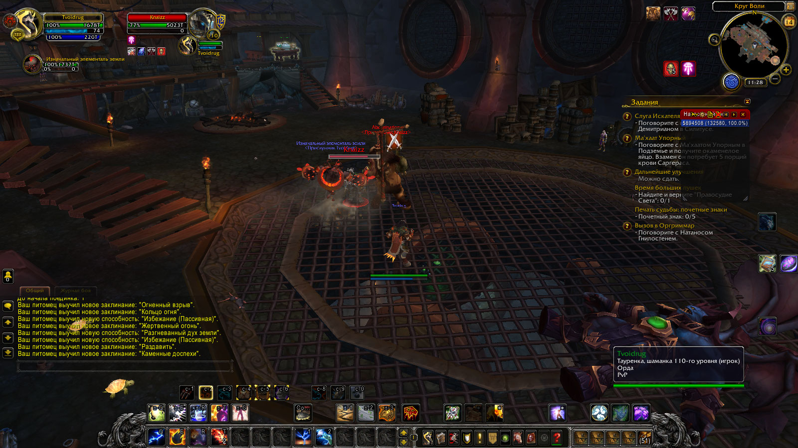 Добавлю, что элементаля и отозвать не получается, т.е если призвал, то находишься в бою до момента, пока элем не пропадет, т.к и отозвать от цели не получится без рабочей панели питомца. |