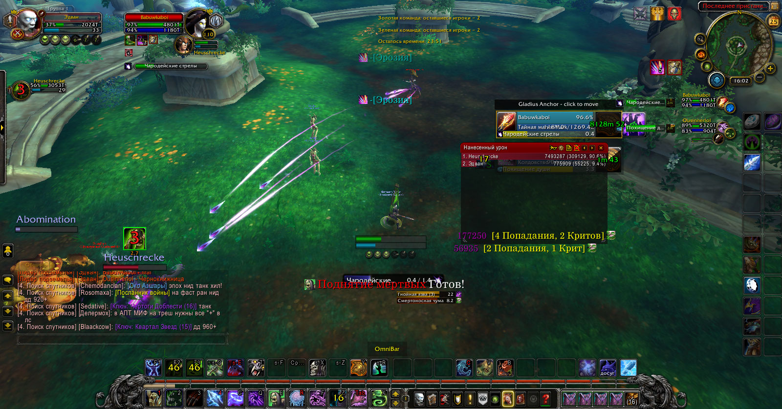 2. Работает неправильно, другими словами спамит зомби там, где попросту нет трупов. Зомби спамятся, сносят по 10 процентов хп на арене и просто ваншотают любой таргет. Данный спелл не имеет ограничений на использование в пвп, просто игрок жмет 1 кнопку, призывает зомби, которых не должно быть, так как нет трупов и сносит 2 таргета.