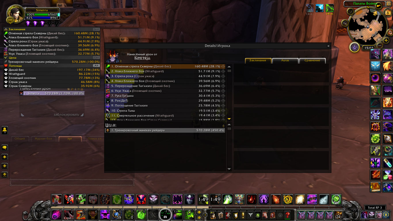 | Description | Играя за демонолга заметил что очень часто возникают проблемы с петами. Страж скверны https://ru.wowhead.com/npc=17252/%D1%81%D1%82%D1%80%D0%B0%D0%B6-%D1%81%D0%BA%D0%B2%D0%B5%D1%80%D0%BD%D1%8B как и Страж гнева (по символу) https://ru.wowhead.com/npc=58965/%D1%81%D1%82%D1%80%D0%B0%D0%B6-%D0%B3%D0%BD%D0%B5%D0%B2%D0%B0 Проблема стража скверны. Не использует свой Удар https://ru.wowhead.com/spell=30213/%D1%83%D0%B4%D0%B0%D1%80-%D0%BB%D0%B5%D0%B3%D0%B8%D0%BE%D0%BD%D0%B0 Который нажат на авто применение, а так же попросту может стоять и тупо смотреть на босса не принимая ни каких действий по этому приходится часто отвлекаться и отзывать пета назад и снова тыкать атаку цели! как следствие потеря дпс. У обоих петов эта проблема единая. Но на маникене этой проблемы как обычно нет... так что проблема возникает в рейдах и ключах. Далее скил https://ru.wowhead.com/spell=104316/%D0%BF%D1%80%D0%B8%D0%B7%D1%8B%D0%B2-%D0%B7%D0%BB%D0%BE%D0%B2%D0%B5%D1%89%D0%B8%D1%85-%D0%BE%D1%85%D0%BE%D1%82%D0%BD%D0%B8%D0%BA%D0%BE%D0%B2#guides Призыв зловещих охотников, как я слышал от тех кто играл демоном на офе, у них дамаг должен быть куда выше но мои поиски информации на счет урона по этим питомцам не увенчались успехом но если посудить по тому что я вижу демонолог не выдает урон по своему илвл. Предоставляю видео по демонологу где человек в 960ом гире спокойно держит 2 ляма дпс, в то время как тут при такой же ротации это не реально даже собрав нужные статы. https://youtu.be/78fObf9ERw8 буду рад если займетесь спеком демонолога, сильно обделенный класс вниманием | ||||