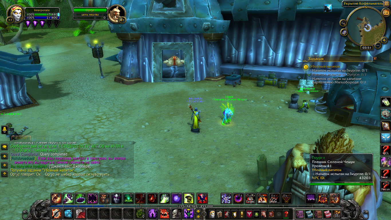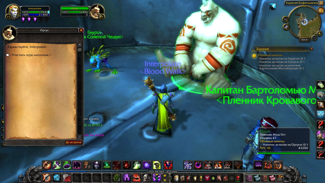 | Description | https://ru.wowhead.com/quest=26534 Отсутствует https://ru.wowhead.com/npc=43203 (может не респавнится после смерти, может проваливается под текстуры, а может вообще спавн не прописан) У https://ru.wowhead.com/npc=43205 отсутствует нужный госип, следовательно и не выполнить критерий. | ||||