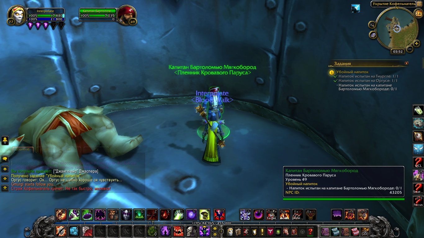 1. На https://ru.wowhead.com/npc=43203 действует отбрасывание от взрыва https://ru.wowhead.com/npc=43204 , видимо его просто в прошлый раз выкинуло вниз, из-за чего он не респавнился и не находился через /target по всей территории квестхаба. 2. С https://ru.wowhead.com/npc=43205 же вообще нельзя взаимодействовать, ни кликом, ни через бинд. |