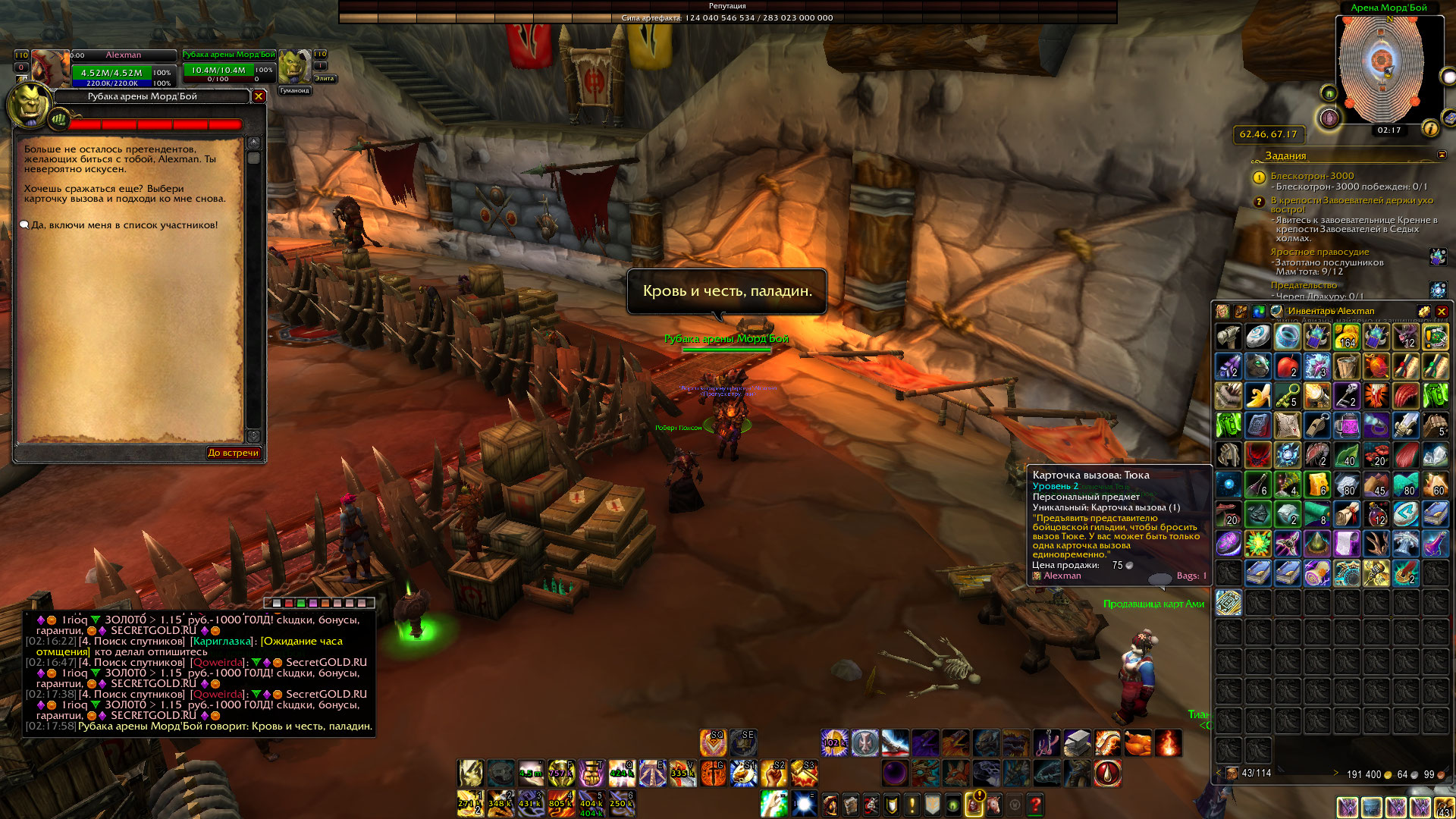 | Summary | 0005571: бойцовская гильдия https://ru.wowhead.com/npc=67267 | ||||