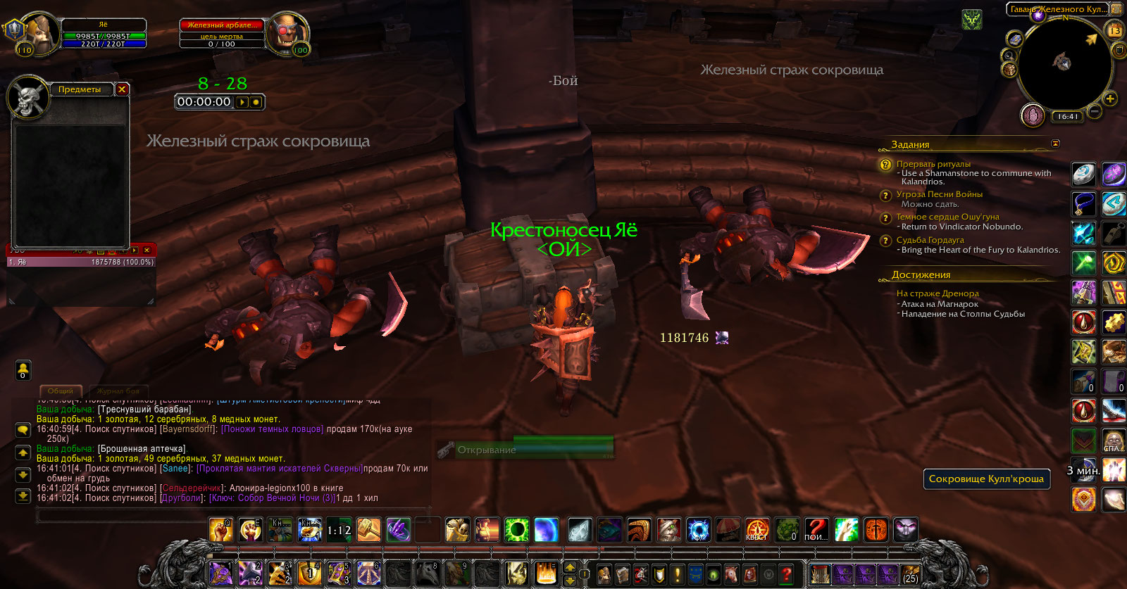 Поправил около 60 сундуков с неверным лутом Дальше вопрос, вы уверены что в https://ru.wowhead.com/object=235097 не было лута? У меня в нём был |