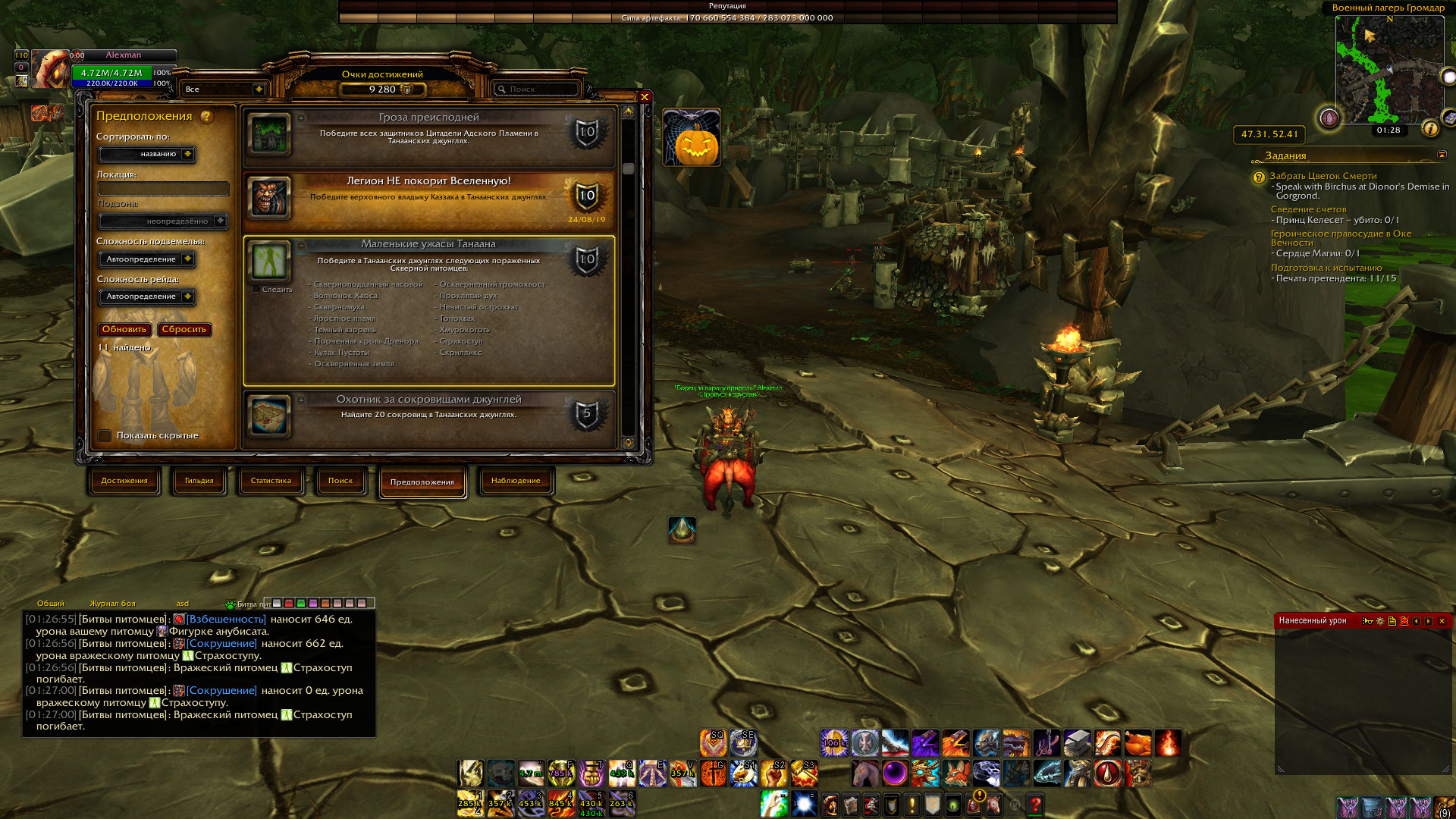 | Summary | 0006113: https://ru.wowhead.com/achievement=10052 не засчитывает | ||||