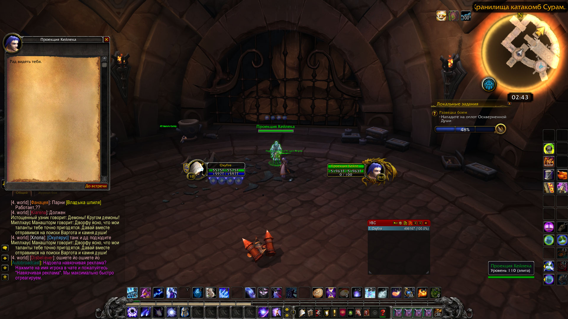 | Additional Information | Пробовал чистить кэш и релогаться, не помогло. В этом же "подвале" нашел вторую "Проекцию Кейлека" квест тоже не выдает. | ||||