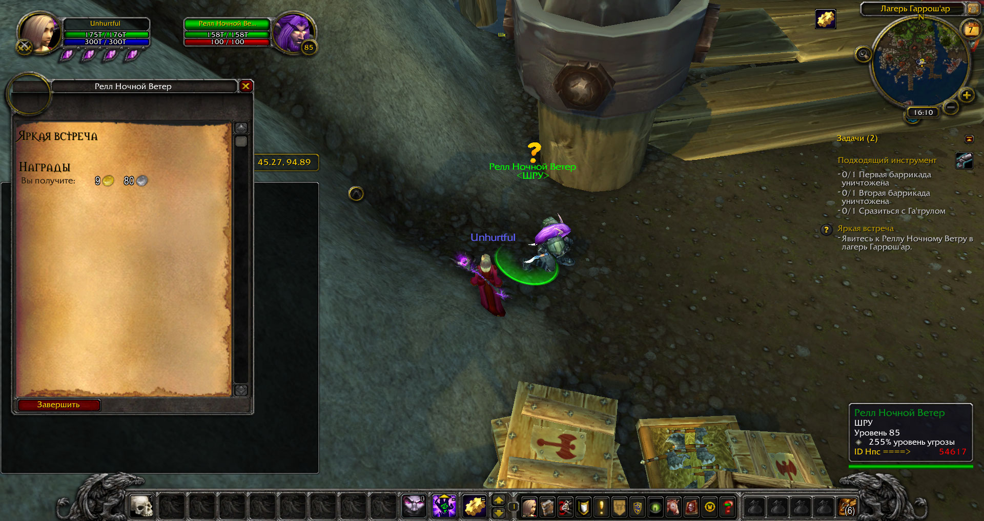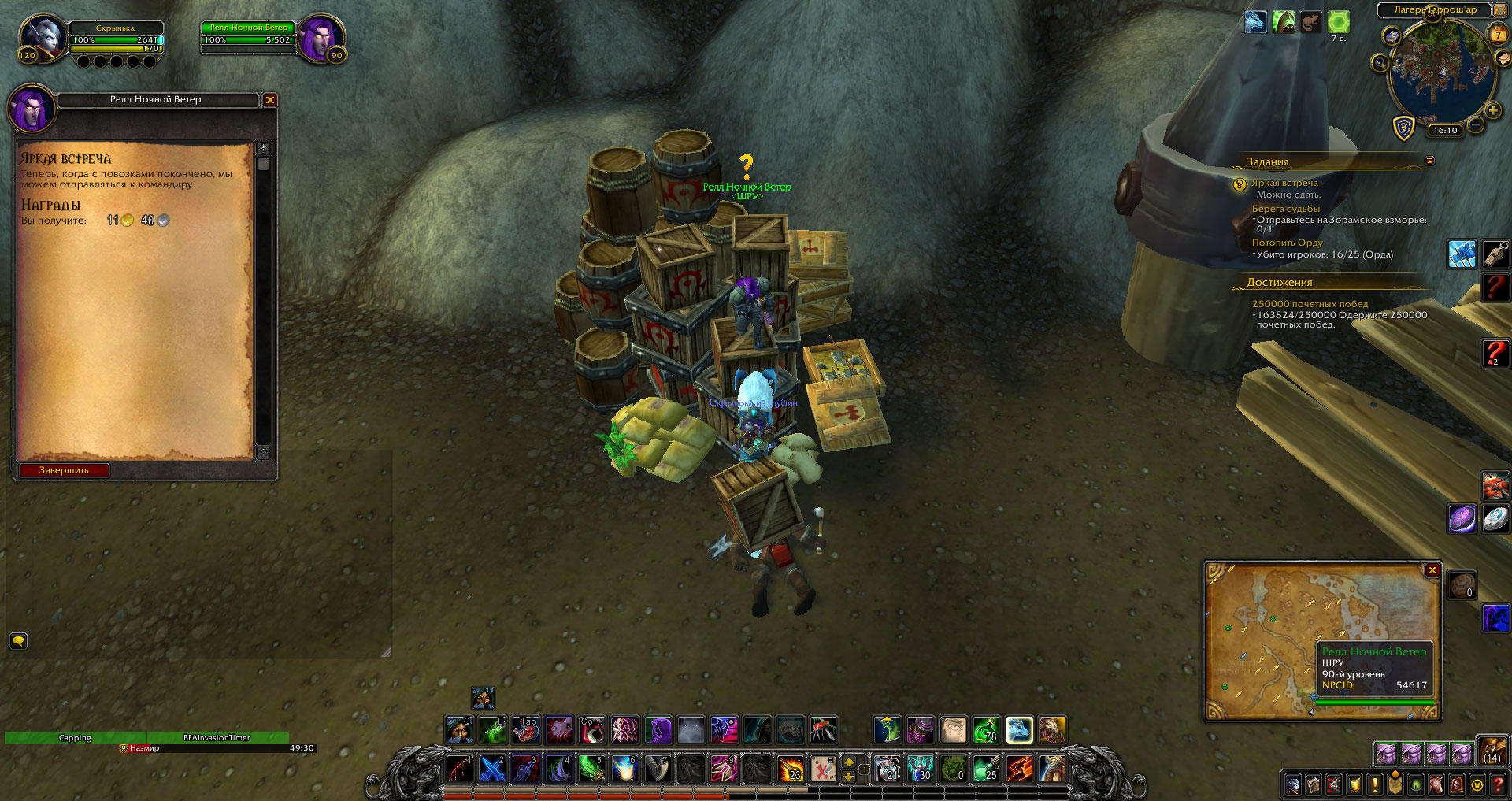 | Description | https://ru.wowhead.com/quest=31734/%D1%8F%D1%80%D0%BA%D0%B0%D1%8F-%D0%B2%D1%81%D1%82%D1%80%D0%B5%D1%87%D0%B0 Доступен у https://ru.wowhead.com/npc=54617 без выполнения преквестов. 1) Должен становиться доступен только после выполнения https://ru.wowhead.com/quest=30069 и https://ru.wowhead.com/quest=31734; 2) https://ru.wowhead.com/item=89612 можно использовать на одном https://ru.wowhead.com/npc=66339, такого быть не должно. На каждую повозку можно использовать только 1 раз. 3) при завершении квеста окошко пустое. | ||||