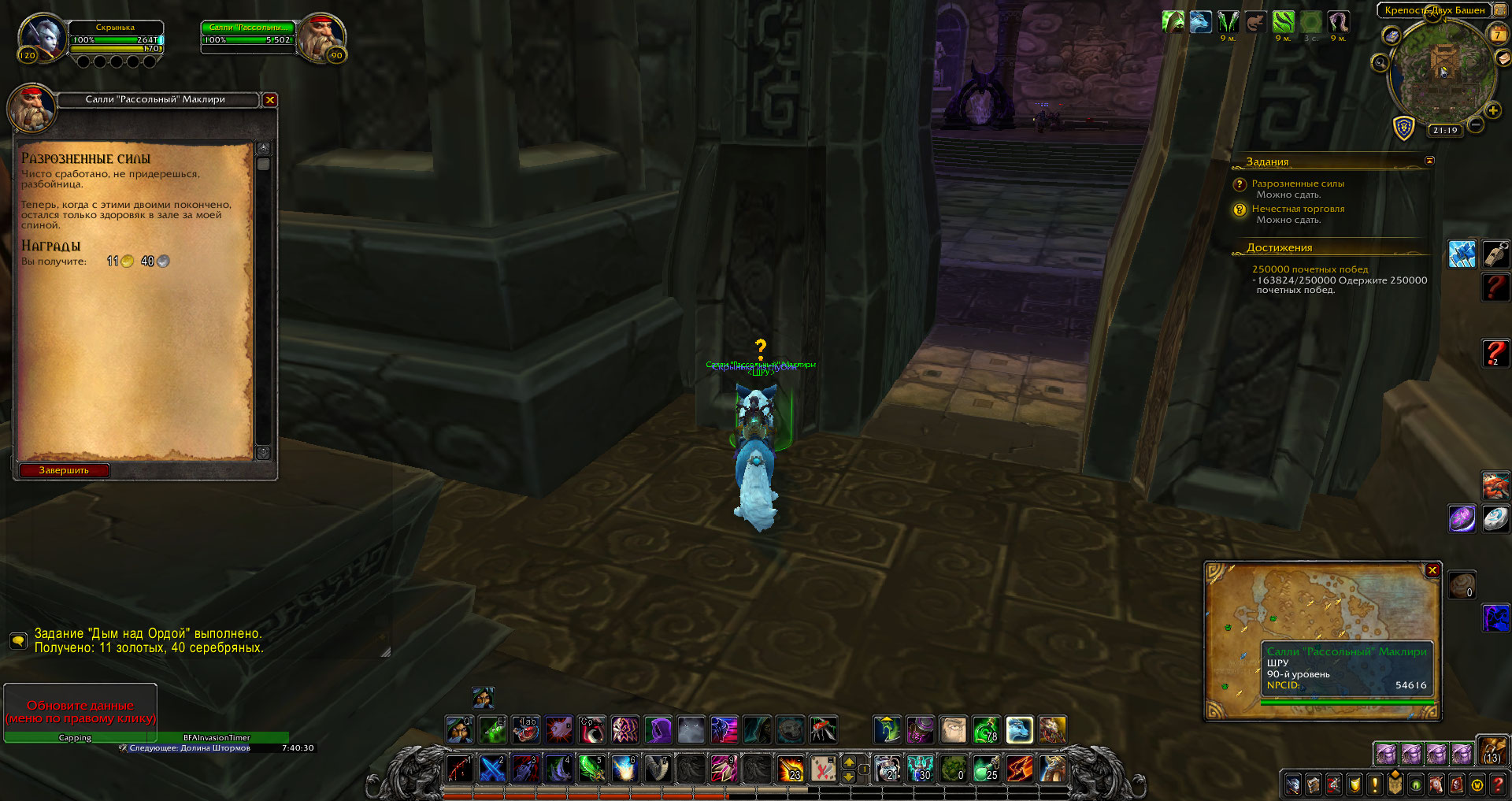 | Description | https://ru.wowhead.com/quest=31742/%D1%80%D0%B0%D0%B7%D1%80%D0%BE%D0%B7%D0%BD%D0%B5%D0%BD%D0%BD%D1%8B%D0%B5-%D1%81%D0%B8%D0%BB%D1%8B Квест доступен без выполнения преквестов 1) должна даваться возможность взять квест только после выполнения https://ru.wowhead.com/quest=29552/%D0%BA%D1%80%D0%B8%D1%82%D0%B8%D1%87%D0%B5%D1%81%D0%BA%D0%BE%D0%B5-%D1%81%D0%BE%D1%81%D1%82%D0%BE%D1%8F%D0%BD%D0%B8%D0%B5; 2) окошко при сдаче квеста без текста | ||||