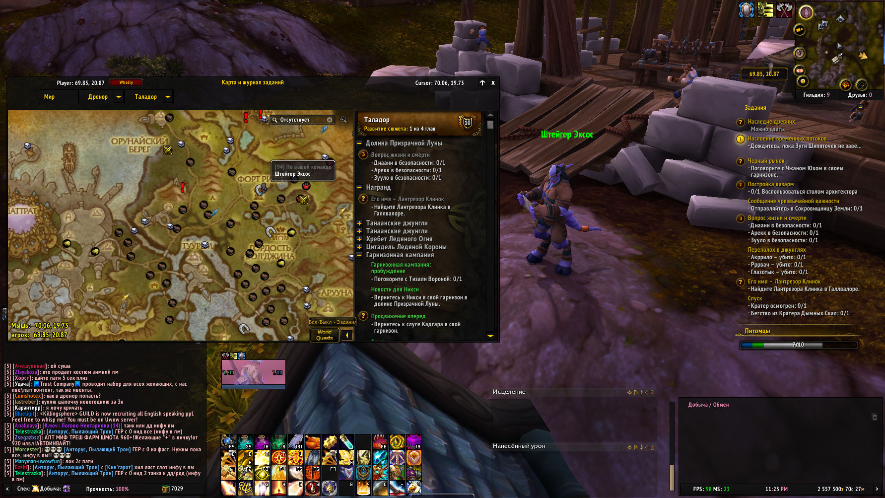 Наверное я забегаю вперед, но будут ли доступны эти квесты в гарнизоне? Так как если в Горгонде не строить Аванпост Арены, цепочка Таладора должна начинаться именно в гарнизоне с квестов какие вы указали, а именно 34676 и 37183 какие берутся при условии завершения Горгонда у https://ru.wowhead.com/object=232397/%D0%B4%D0%BE%D1%81%D0%BA%D0%B0-%D0%BE%D0%B1%D1%8A%D1%8F%D0%B2%D0%BB%D0%B5%D0%BD%D0%B8%D0%B9 и https://ru.wowhead.com/npc=81492/%D0%B1%D0%BE%D1%83%D0%B4%D1%80%D0%B8%D0%BA-%D0%B3%D1%80%D0%B5%D0%B9 соответственно. Но какой-то из них по цепочке с аванпостом должен быть, а другой без (но с закрытой прошлой локой). Если надо могу проверить какой именно на офе. |