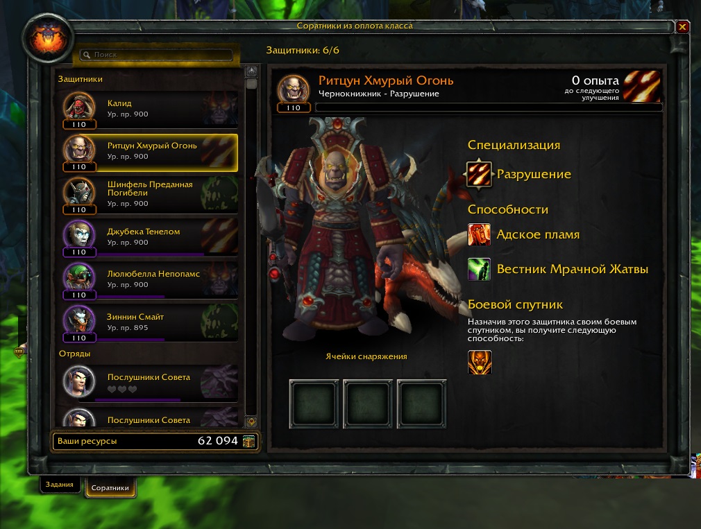Maksin, да вроде ничего такого, как обычно каждый день заходил отправлять соратников на задания и обнаружил что все их предметы пропали. В первый раз, проверяя какие предметы у соратников, через меню запускаем рядом с картой, я увидел что у них пропали все предметы. Но когда я зашел в оплот и посмотрел, то увидел что у соратников пропали все "золотые" или "легендарные" предметы (пример: https://ru.wowhead.com/item=152453/пропитанная-скверной-фигурка-легиона), остальные же фиолетовые и синие остались. На след. день исчезли все предметы. Во второй раз, это произошло 3-дня назад, просто исчезли все предметы. Из моих последних действий в текущей и на прошлой недели были: • Выполнение достижение Весельчак (Зимний покров) • Попытки прокачать гарнизон до 3-ур, но он оказывается не рабочий • Прокачка репутации с Пандарией и Дренором |