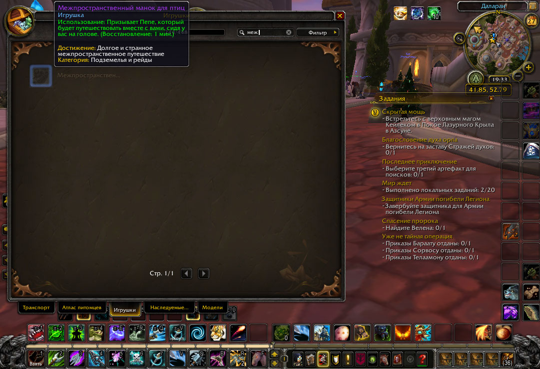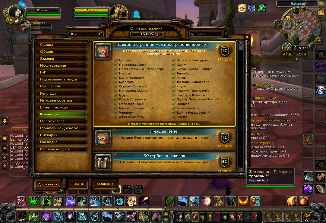 | Description | Достижение работает, но не приходит награда https://ru.wowhead.com/achievement=9838 достижение выполнил. Награду Межпространственный манок для птиц ( https://ru.wowhead.com/item=122293 )не получил. В коллекцию не добавилась. Почтой не пришла. Legion x100 альянс ник: Plcasso | ||||