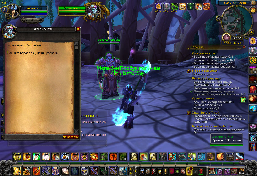 | Description | ссылка на квест: https://ru.wowhead.com/quest=33256 При принятии квеста, автоматически пропускает сценарий и тпшит в зону завершения квеста( деревня Эмбаари). При этом все нпс исчезают, включая https://ru.wowhead.com/npc=73395 , которой собственно и нужно сдать данный квест. Видео как должно быть: https://www.youtube.com/watch?v=12zZl8WAkNE&feature=youtu.be | ||||