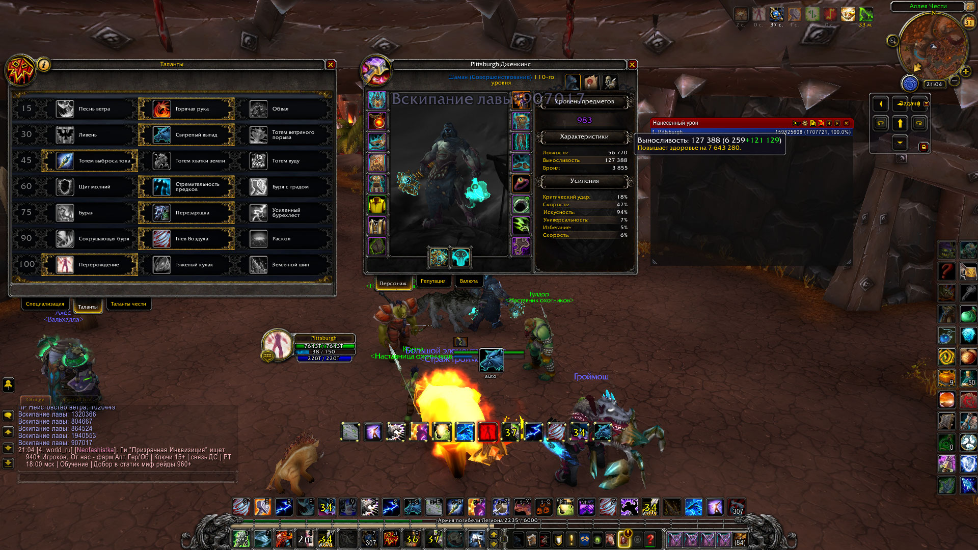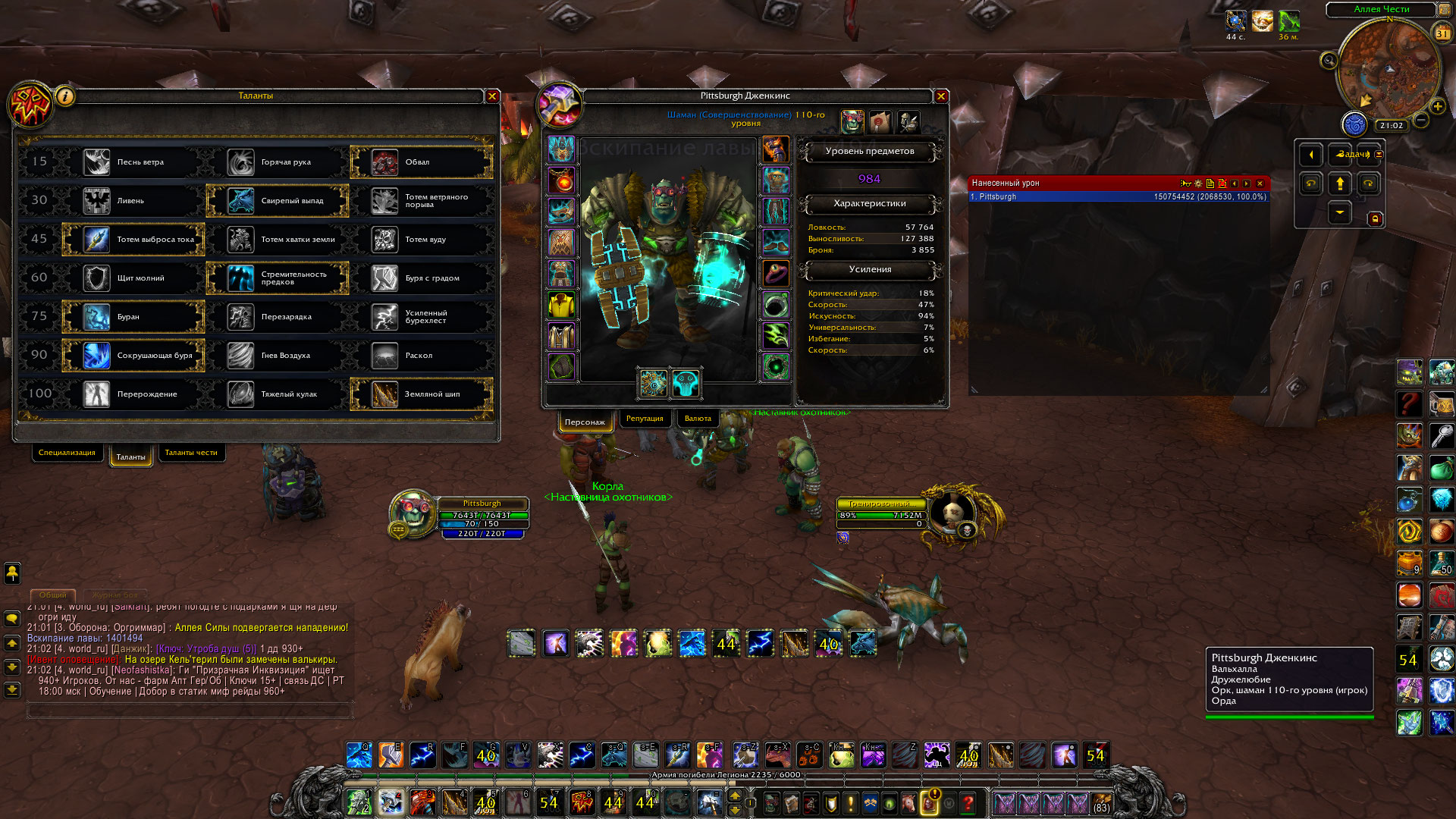 | Description | Суть заключается в том, что фул донатный(без реликов), не даю дамага. Калькулятором считал на 7.3 только на оффе, но это бородатые года. В шмоте 966 давал 2.5-2.7. На разных билдах, а именно пвп, впе данж, пве рейд, пве узко направленные. При разговоре с другими шамаводами( ЭНХАВОДАМИ ), при 970 выдают по 3кк, и больше. Играя за шамана с 4.0.3, выучил класс наизусть. Знаю были проблемы тут еще на 7.0 с энхами. Прошу посмотреть логи мои и просто дать ответ. Калькулятором не могу пользоваться на тут, ибо пираточка, и посмотреть сколько я должен давать в 984 не знаю. Прошу посмотреть логи, и подшаманить :D Или дать ответ. Скринов с калькулятора не осталось оффы, ибо самы знаете когда там легион был 7.3. | ||||