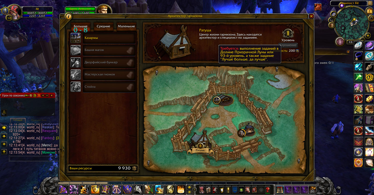 | Description | https://ru.wowhead.com/quest=33814/ Квест, что необходим для постройки ратуши 2 уровня. Второй критерий - 93+ уровень персонажа не срабатывает. Квесты по цепочке ранее все уже сделаны, а этот квест не могу взять, НИП https://ru.wowhead.com/npc=81152/ не выдаёт. | ||||