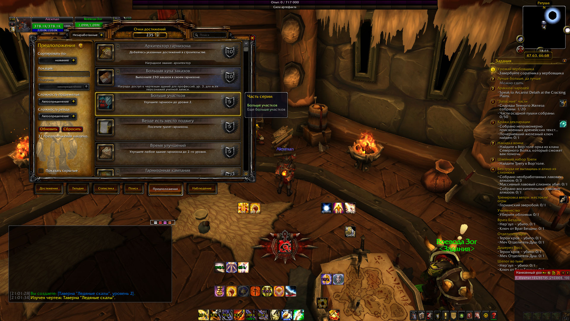 | Description | https://ru.wowhead.com/achievement=9100 https://ru.wowhead.com/achievement=9101 не засчитывается улучшение гарнизона | ||||