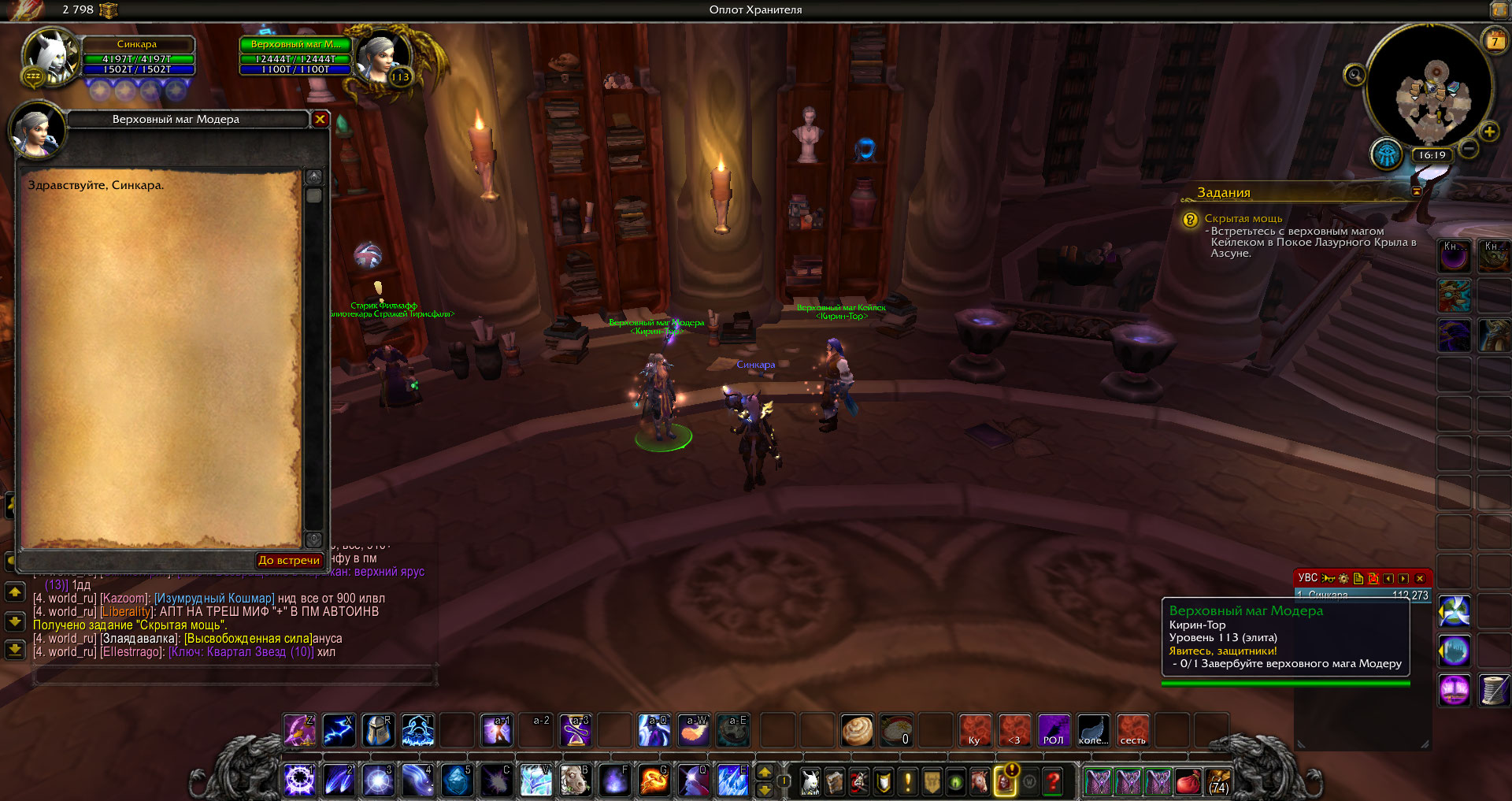 Поймите меня правильно: Я дала вам команду - вы пишите что квест не сдан. Гм говорит что квест сдан. Я из этого вывод какой могу сделать? От меня тут больше ничего не зависит. Опять же, если гм говорит, что у вас квест Растущая сила сделан и сдан, значит в оплоте у вас по-хорошему (по цепочке) должен был появится квест. Если нет, обратно к гмам, но уже с квестом https://ru.wowhead.com/quest=43441 все, конечно же, по шаблону. |