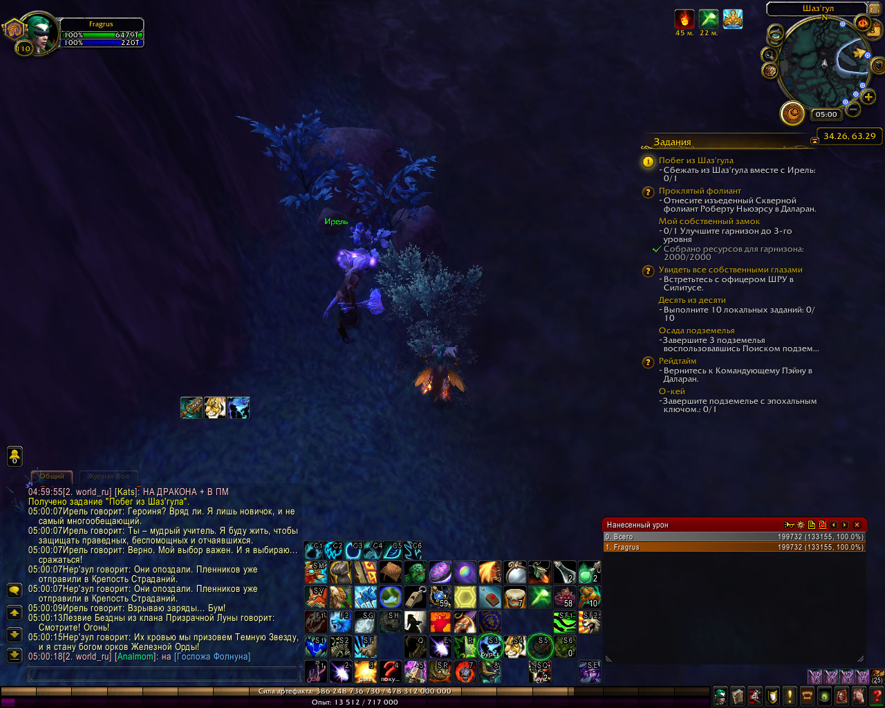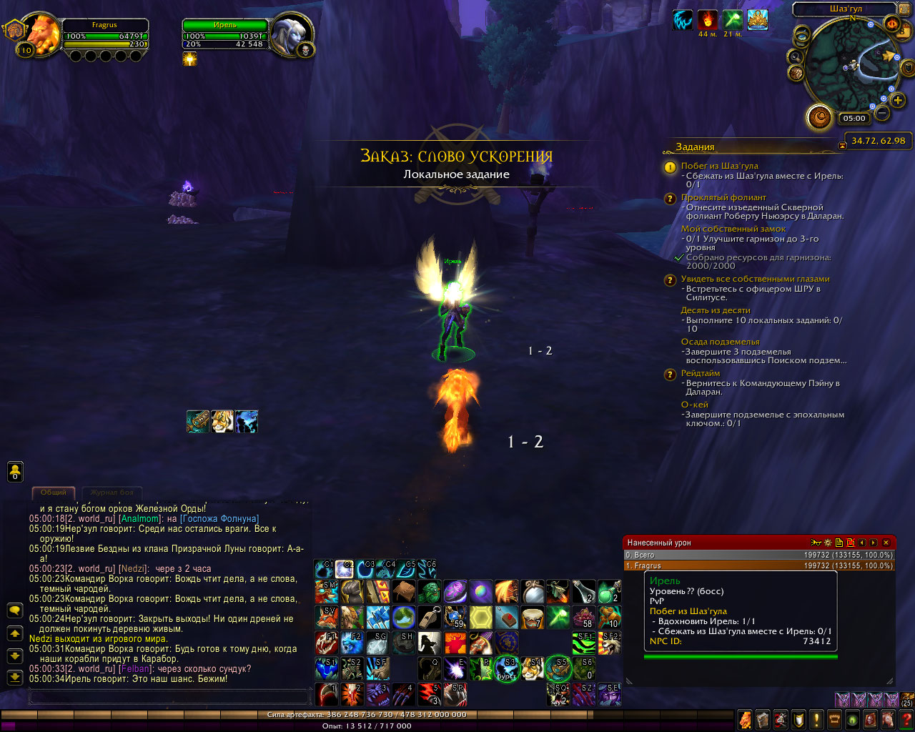 Дело не в самом квесте, а в том, что по всему Дренору прокают локальные задания Легиона, квест думает что мы находимся в другой области - и не стартует ивент с Ирелей. Индикацией этого нам служит красная надпись по-среди экрана при тыкании на диалог: "Для этого вы должны быть в другой зоне", и Ирель пропадает. Чтобы стартануть квест, вам нужно встать возле Ирель так, чтобы не было прокнутой локалки с Легиона в списке задач. Тогда ивент начнётся и сможете спокойно завершить квест. |