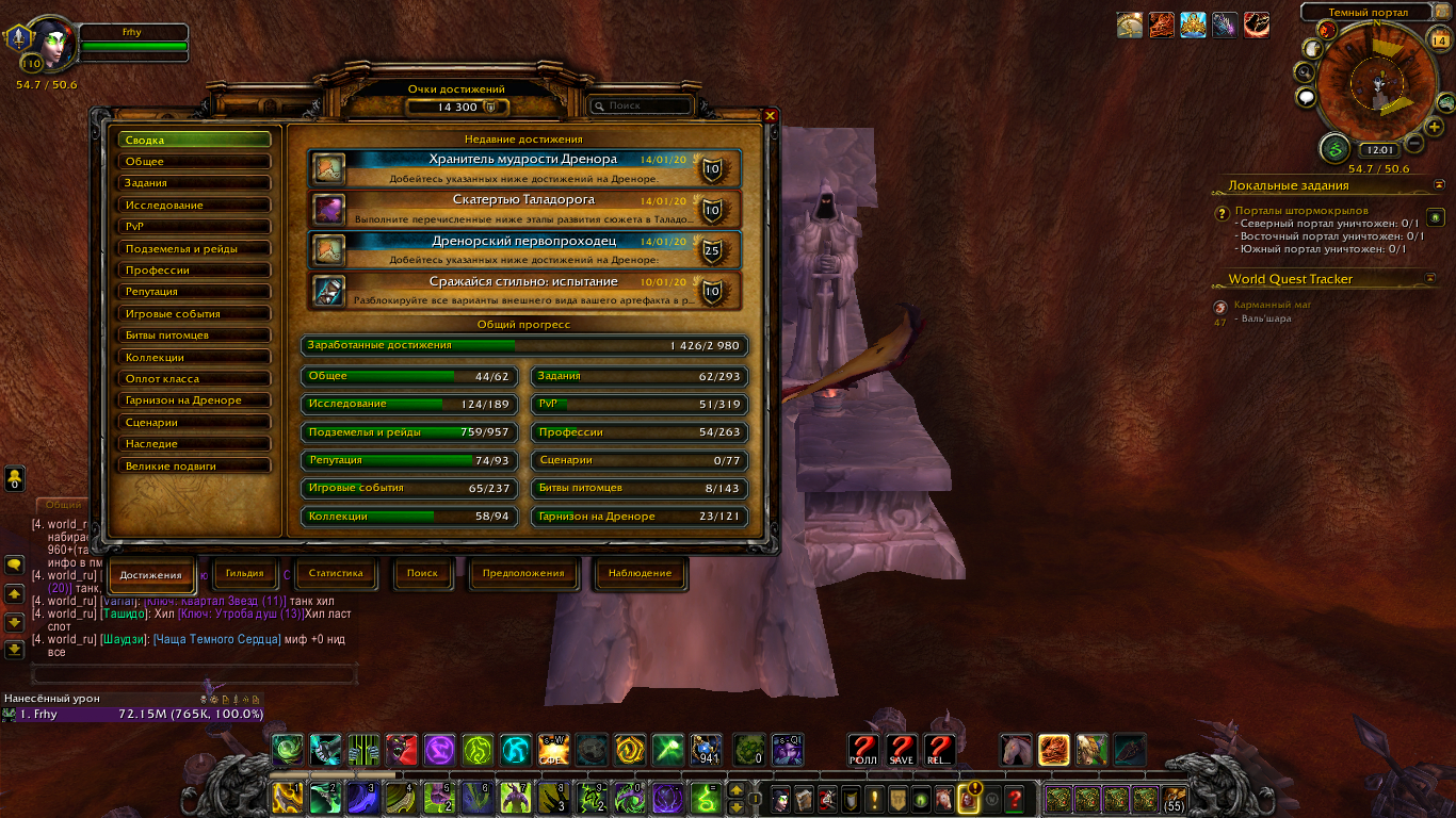 | Description | Не могу выполнить 3 сюжетные цепочки (кроме "Бедствия араккоа") в Таладоре, т.к. нет квестов. Выполнены все квесты в локации, но продолжений не нахожу. Выполнены практически все достижения (осталось только это) для "Дренорский первопроходец". Как мне увидеть квесты в данной локации? Смотрел на вовхеде начало цепочек, но ни у одного из НПС нет данных квестов. | ||||