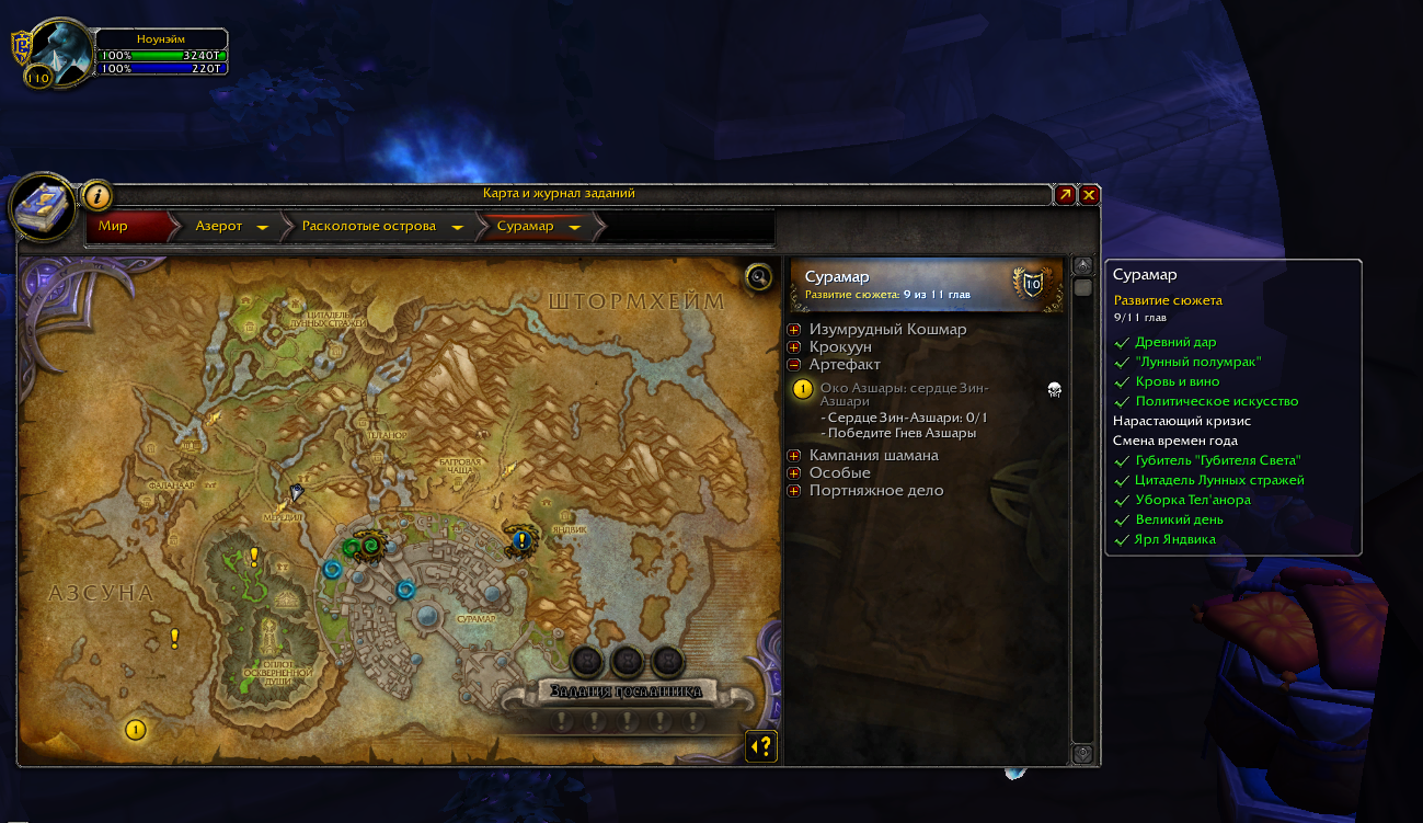Получилось. Значит дело было в рейде Изумрудный Кошмар. Я получил ачиву и завершил сюжетку. Спасибо большое за помощь. |