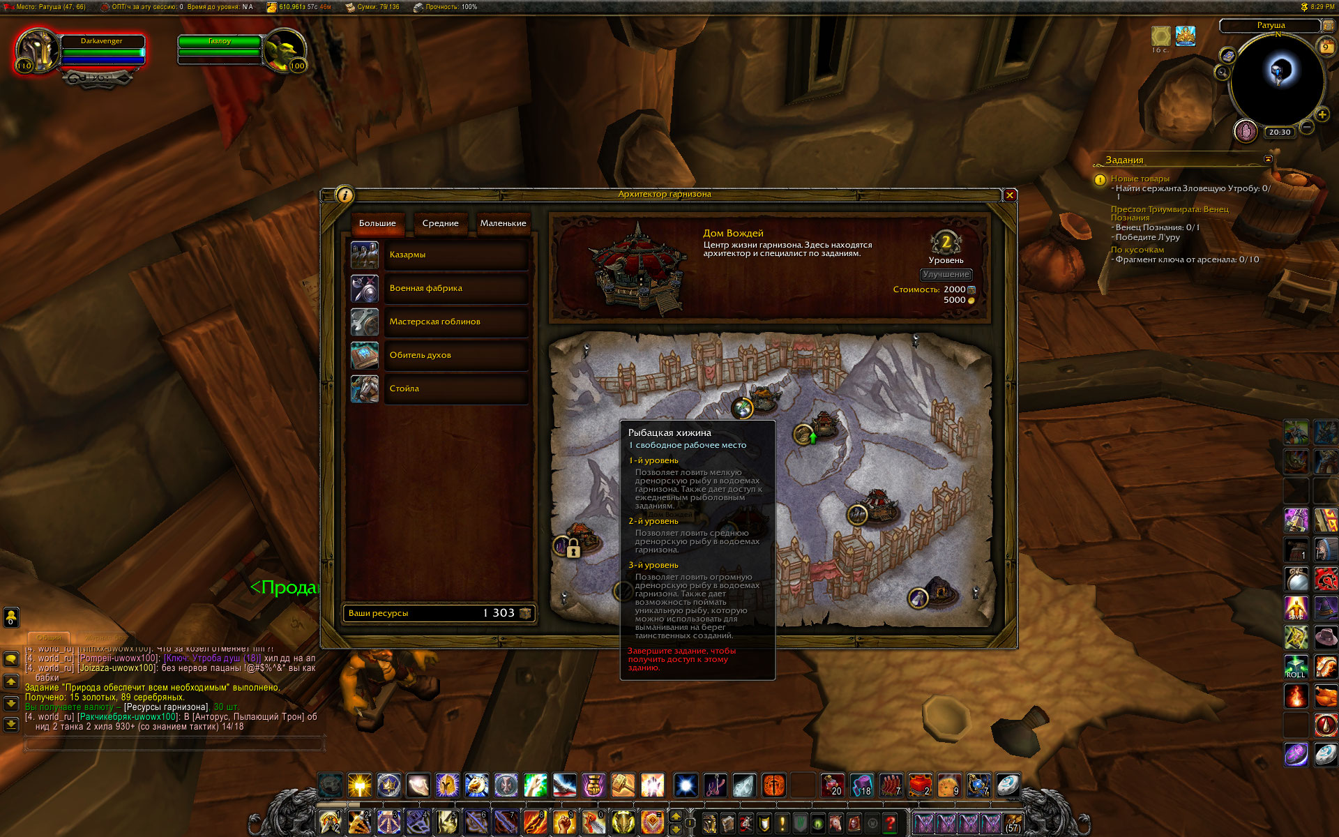 | Steps To Reproduce | улучшить гарнизон до 2 уровня, взять начальный квест цепочки у рыбацкой хижины. Завершить цепочку, убедиться что видео строительства хижины не запустилось и что на карте гарнизона рыбацкая хижина по прежнему под замком. | ||||