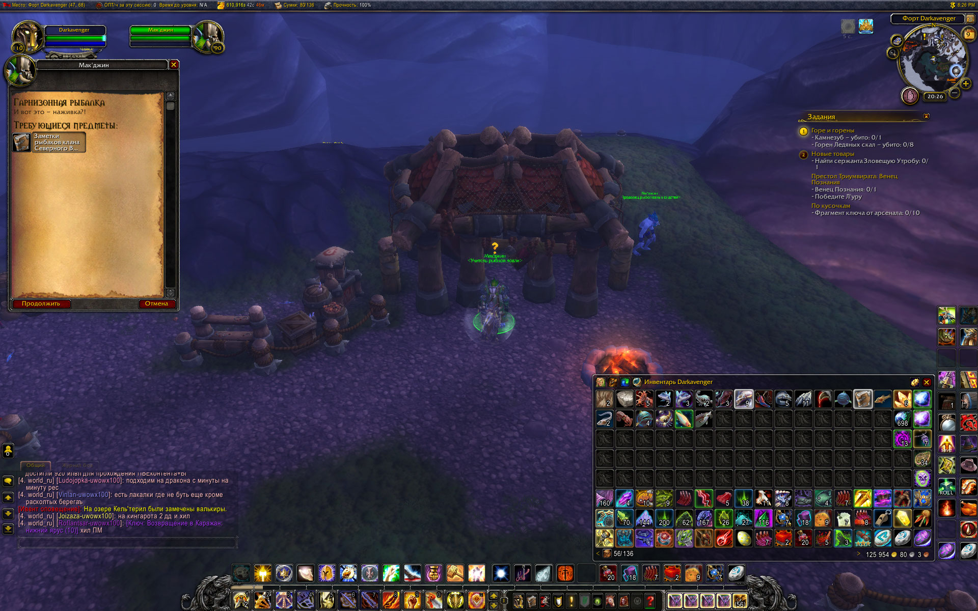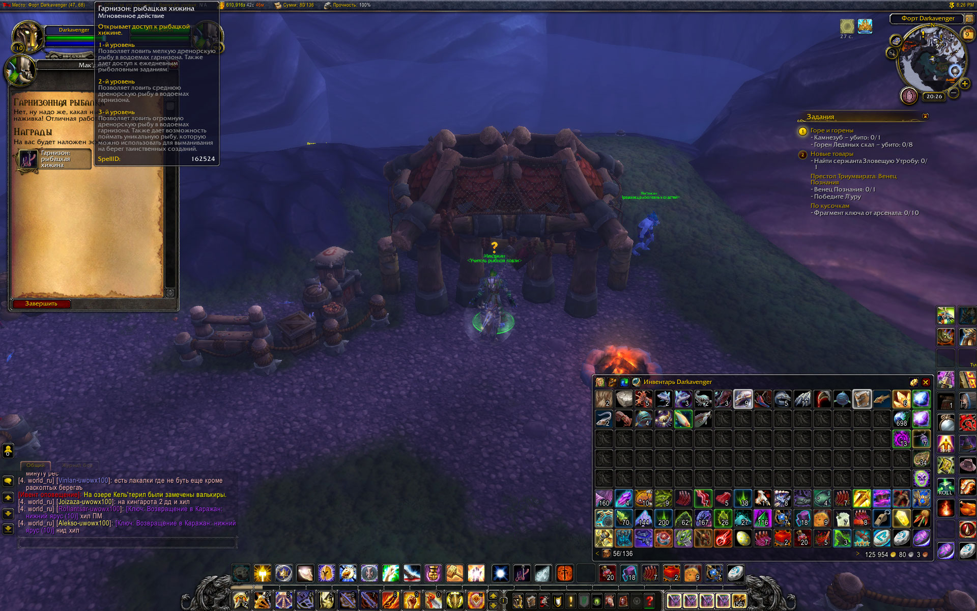 | Description | Сначала подумал, что приснилось, но - нет. После выполнения квестовой цепочки для получения https://ru.wowhead.com/building=64/%D1%80%D1%8B%D0%B1%D0%B0%D1%86%D0%BA%D0%B0%D1%8F-%D1%85%D0%B8%D0%B6%D0%B8%D0%BD%D0%B0#comments на двух персонажах - с вторым и третьим уровнем гарнизона - рыбацкая хижина не активировалась. Новый соратник не добавился (как мне кажется). Квест https://ru.wowhead.com/quest=34846/%D1%80%D0%B5%D0%B7%D0%B2%D0%B0%D1%8F-%D1%80%D1%8B%D0%B1%D0%B0#comments у Орды, как у Альянса с этим делом не знаю. | ||||