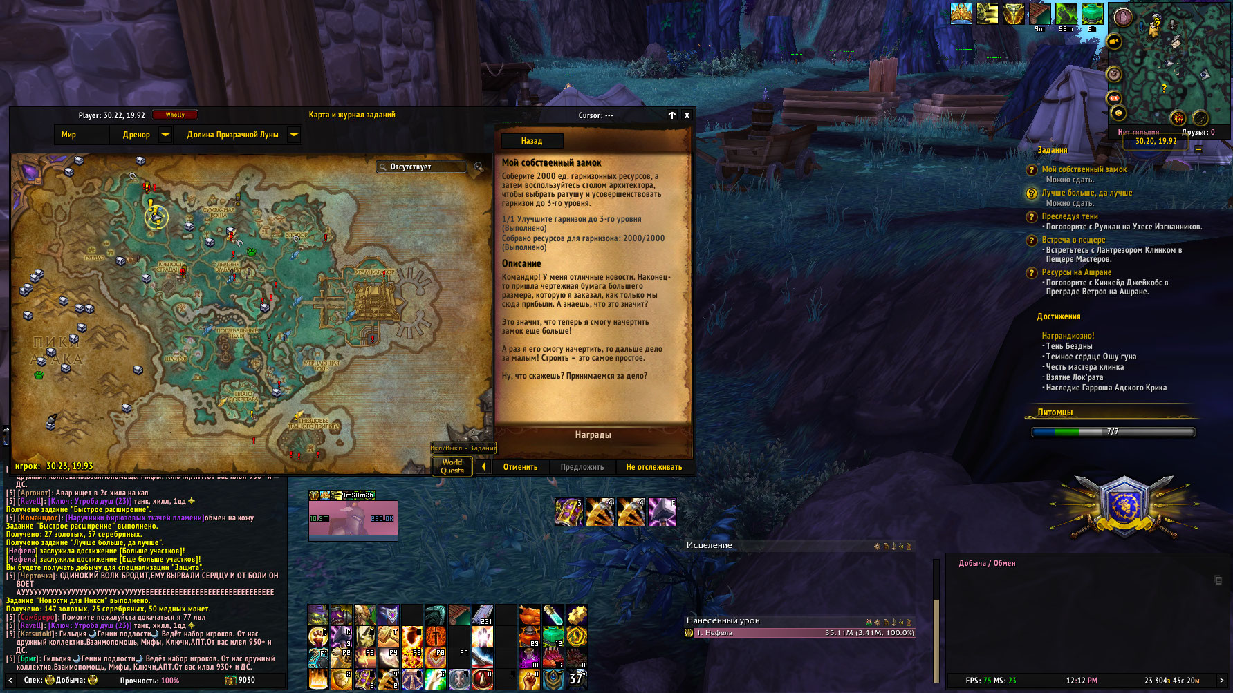 Делал https://ru.wowhead.com/quest=36592/%D0%BB%D1%83%D1%87%D1%88%D0%B5-%D0%B1%D0%BE%D0%BB%D1%8C%D1%88%D0%B5-%D0%B4%D0%B0-%D0%BB%D1%83%D1%87%D1%88%D0%B5 паралельно уже был взял квест https://ru.wowhead.com/quest=36615/%D0%BC%D0%BE%D0%B9-%D1%81%D0%BE%D0%B1%D1%81%D1%82%D0%B2%D0%B5%D0%BD%D0%BD%D1%8B%D0%B9-%D0%B7%D0%B0%D0%BC%D0%BE%D0%BA. А должен выдаваться после выполнения... Как видно на скриншоте при апе гарнизона до 2го уровня, засчитало и этот квест. |