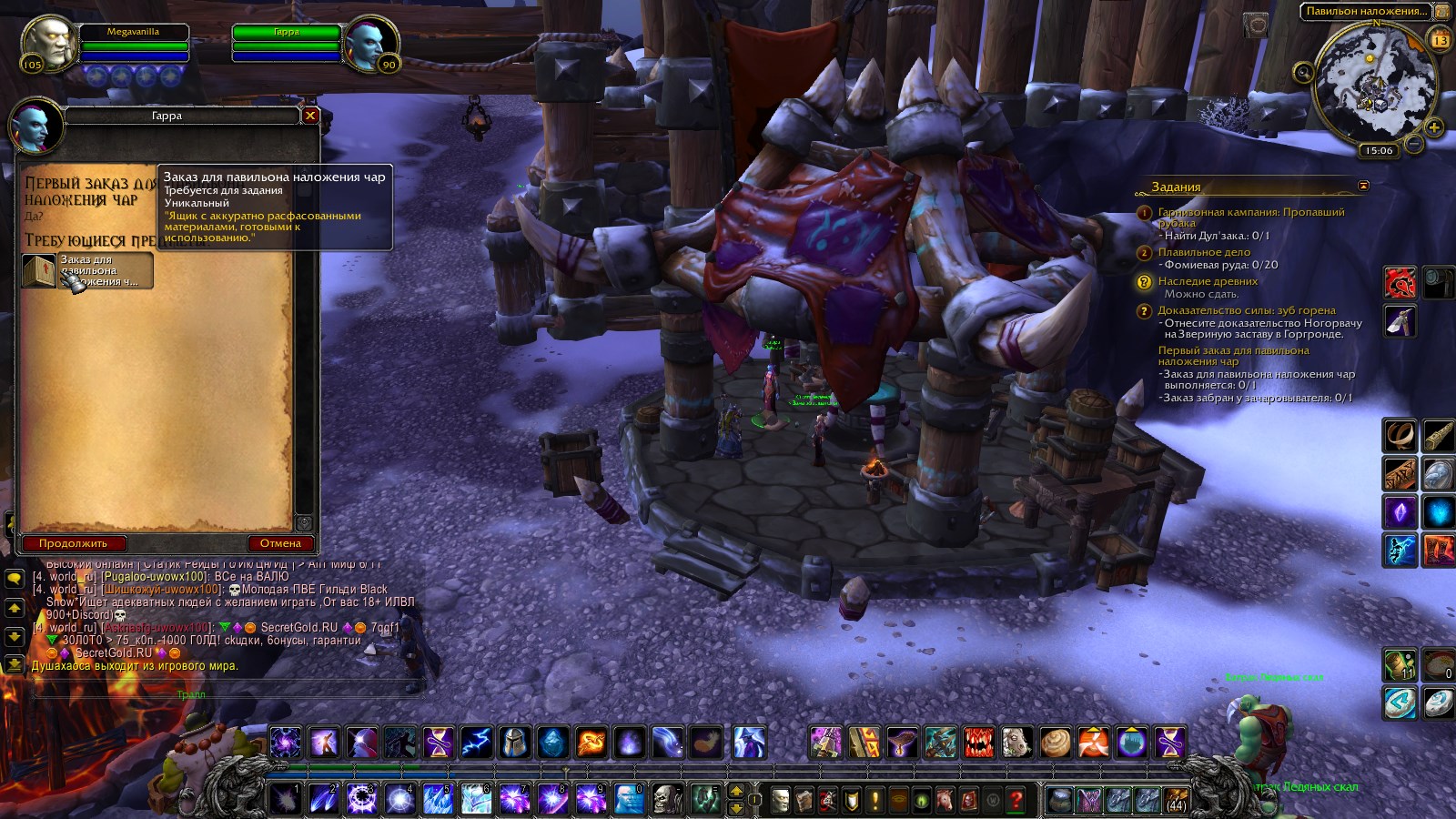 | Description | Заранее прошу прощения если я чего-то не понял, но никак не могу понять, где взять "Заказ для повильона для наложения чар", чтобы закрыть квест. Собственно с гарнизоном в целом беда. А каждый раз его сбрасывать совсем не радует( | ||||