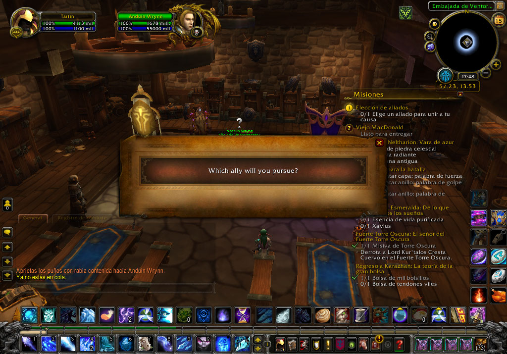 | Description | la mision te la da anduin wrynn en la embajada de ventormenta, te pide hablar con Turailon y Alleria sobre los templeluz y los elfos del vacio luego de hablarles al intentar elegir una de las razas para buscar no aparecen las opciones | ||||