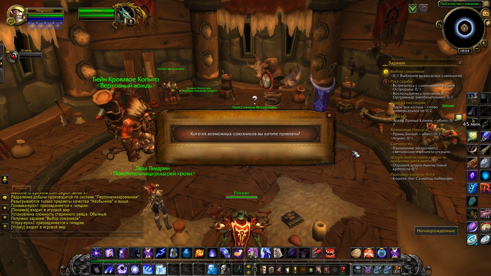| Description | В Оргримаре не работает квест, скрин в приложении. Поговорив с представителями двух союзников, необходимо сделать выбор, но в отображаемом окне выбора нет самих кнопок выбора. | ||||