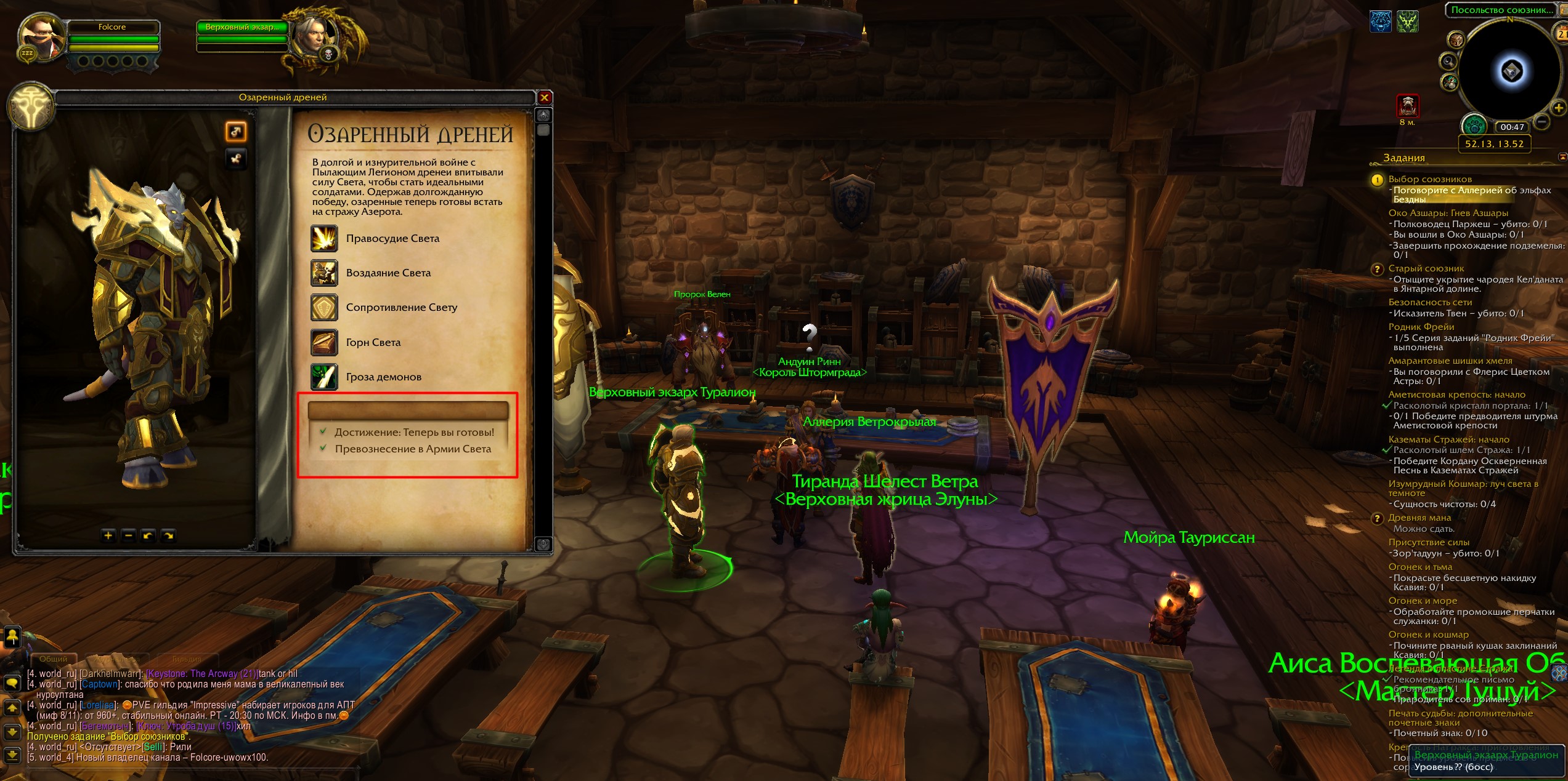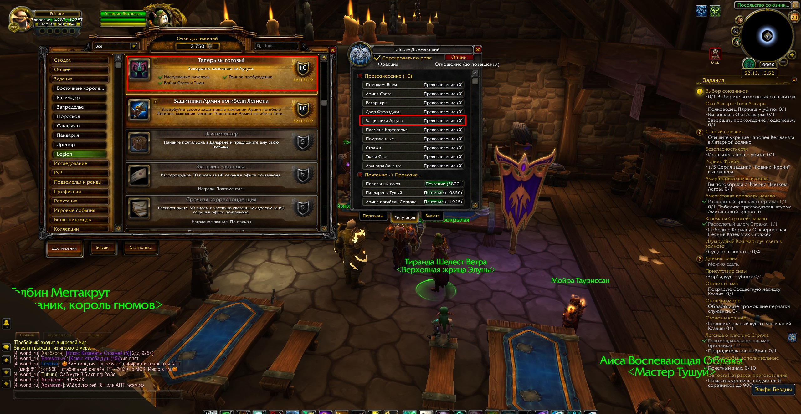 | Description | Добрый день. Ник: Folcore. Думаю, я не первый, кто обращается с проблемой по квесту https://ru.wowhead.com/quest=50239/%D0%B2%D1%8B%D0%B1%D0%BE%D1%80-%D1%81%D0%BE%D1%8E%D0%B7%D0%BD%D0%B8%D0%BA%D0%BE%D0%B2 , но я видел как минимум эльфов в игре, значит проблема решаема, по крайней мере надеюсь на это). Для выполнения квеста, судя по вовхеду, должно быть выполнено 2 условия, а именно репа с защитниками Аргуса должна быть на уровне превознесения, и должна быть ачивка https://ru.wowhead.com/achievement=12066/%D1%82%D0%B5%D0%BF%D0%B5%D1%80%D1%8C-%D0%B2%D1%8B-%D0%B3%D0%BE%D1%82%D0%BE%D0%B2%D1%8B . Как видно на скрине, оба условия выполнены. Но завершить квест не получается. | ||||