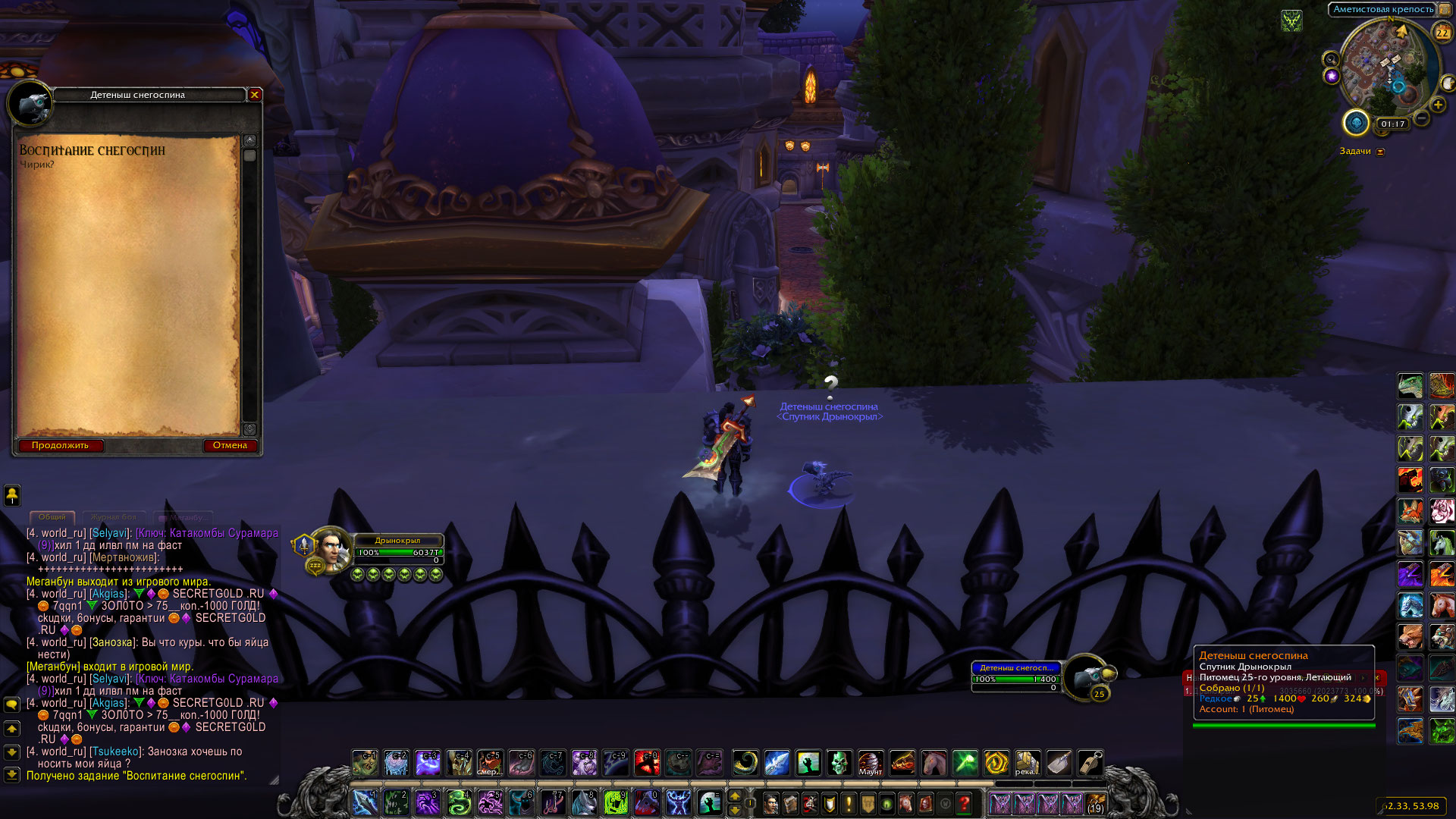 | Description | Не заходил в игру некоторое время, обнаружил что выполненные ранее кв сбросились и теперь петы выдают первые квесты в цепочках https://ru.wowhead.com/quest=44973 https://ru.wowhead.com/quest=44989 и https://ru.wowhead.com/quest=44948/ соответственно. Выполнить заново не было бы проблемой, если бы они уже не были 25 лвл. Из-за этого кв не засчитывается | ||||