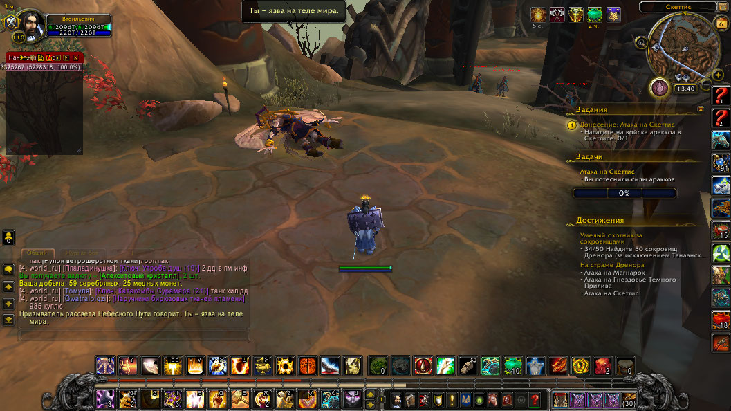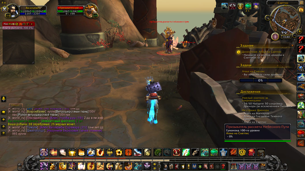 Итак апаю тему. Что могу сказать. Сейчас я еще раз потратился на письма и... заработали все! Вернее что заработало - локалки включились, но письма сдать нельзя, если что. Тобишь они помогают только локалки включить как я понял. Но всё равно есть проблема с https://ru.wowhead.com/quest=36070/%D0%B0%D1%82%D0%B0%D0%BA%D0%B0-%D0%BD%D0%B0-%D1%81%D0%BA%D0%B5%D1%82%D1%82%D0%B8%D1%81 . Дело в том, что мобов там очень мало, не так как должно быть, но ладно. Не беда, мы можем и этих завалить и проценты будут идти, вот только они не идут. Скидываю два скриншота до убийства моба и после. п.с. я перебил там уйму пернатых, проценты не сдвинулись, это визуал баг или оно не пашет? |